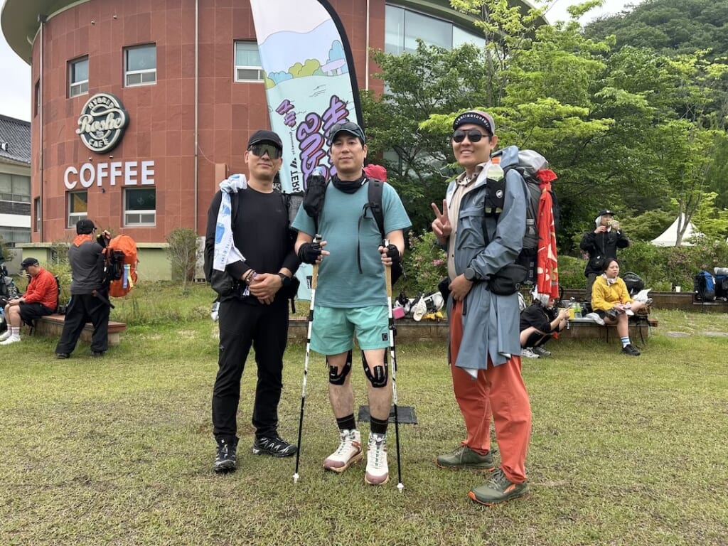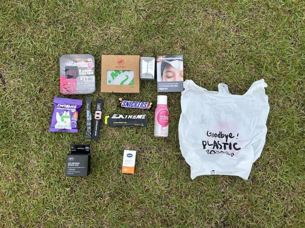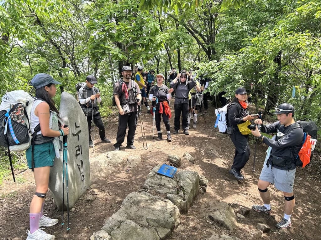 出発前に韓国ハイカーの皆さんにお声がけしてスナップを撮影させていただきました。登山というよりトレラン的なスポーティーなスタイルの方が目立ちました。人気なのはアークテリクス、and wander、lab、山と道など。and wanderのコップはかなり多くの方がバックパックにつけていました。