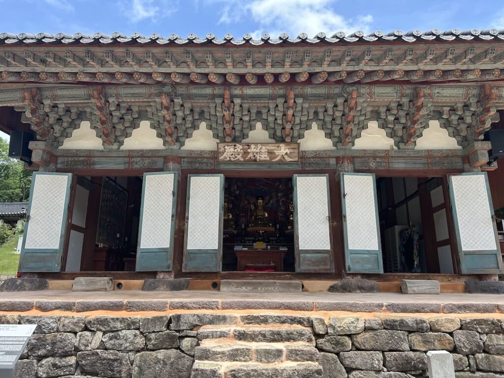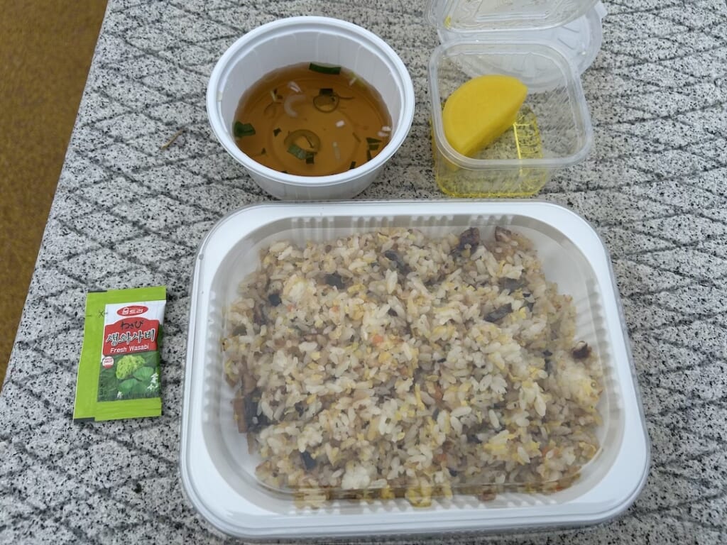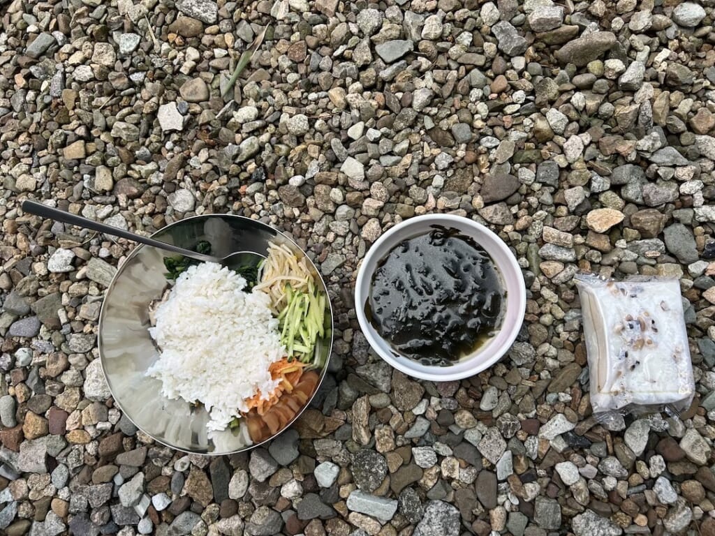 ようやく到着したこの日最初のチェックポイントは、文殊寺という山間のお寺。こちらではお昼ご飯も提供されました。お寺らしくお肉が入っていないビビンバとワカメスープ、そして口がモチャりまくる蒸しパン。ビビンバがとにかく美味しかったです。