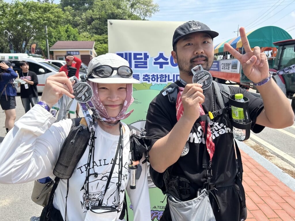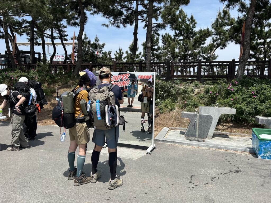 ゴール後は完走のメダルを1人に1つプレゼント。ビールの栓抜きにもなっているのですがズッシリ重たく、GO OUT KOREAのメンバーに聞いたところ一番予算がかかっているそうです。ゴール地点にも鏡を使ったフォトスポットがあり、みなさん記念撮影をしていました。