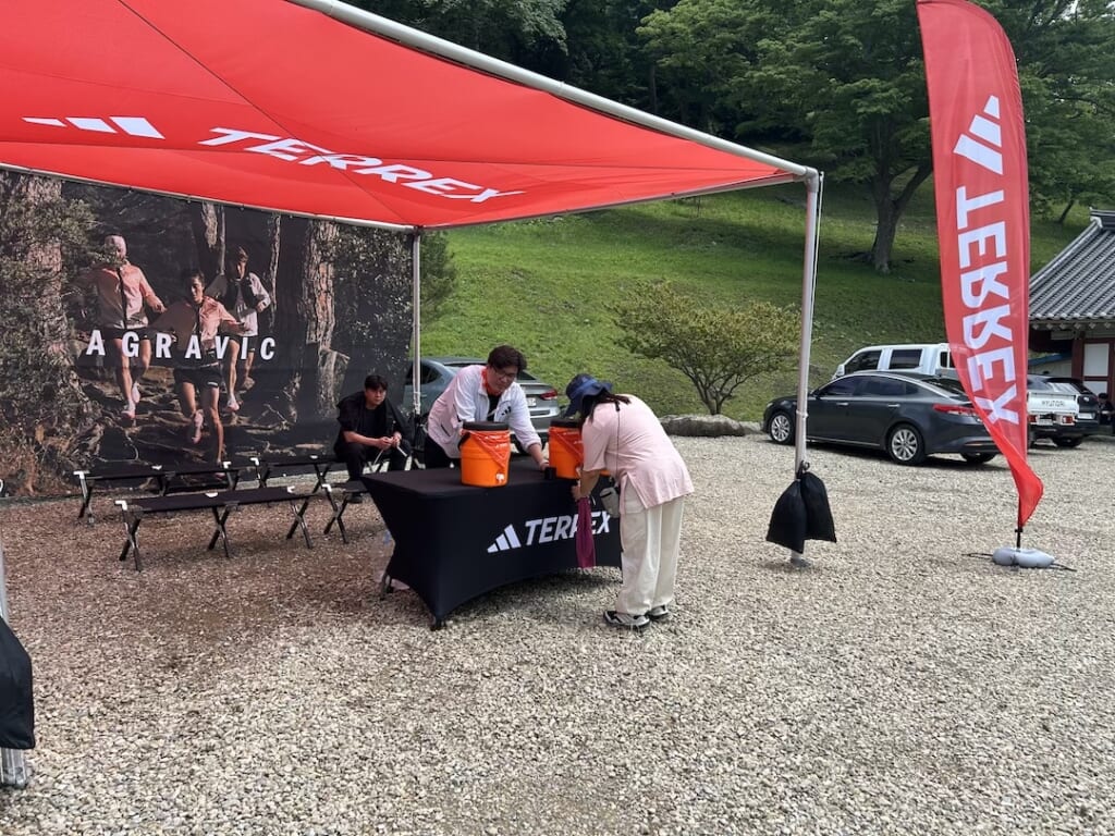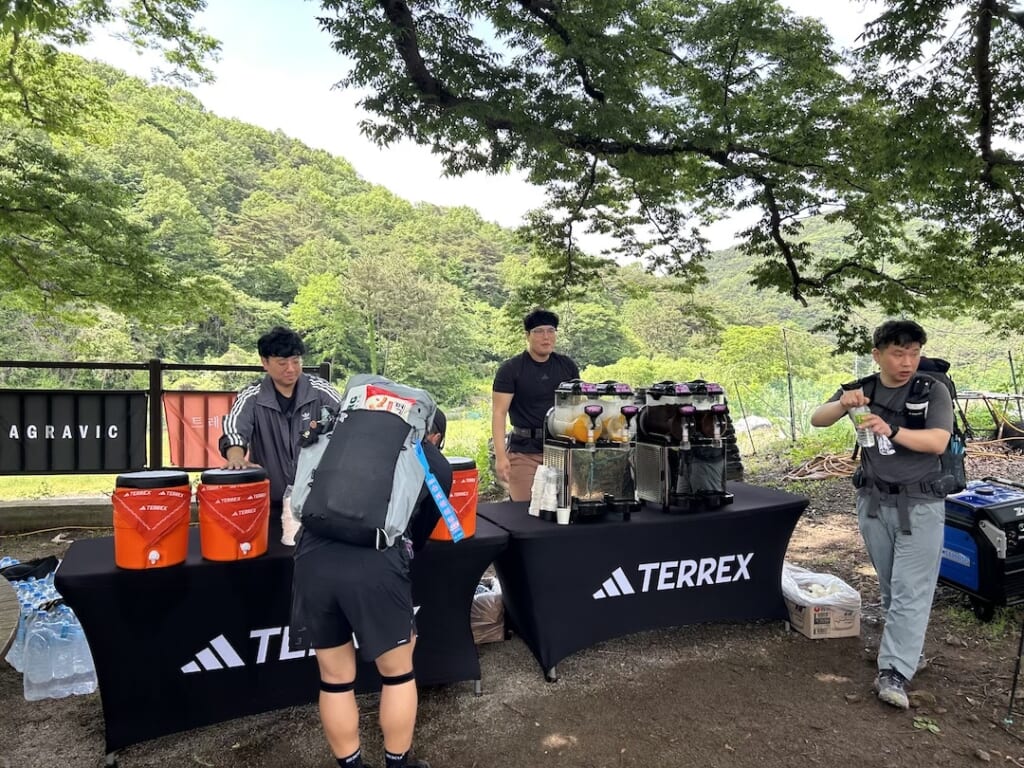 境内ではスポンサーであるアディダステレックスが給水ポイントを作り、シューズのレンタルも行っていました。