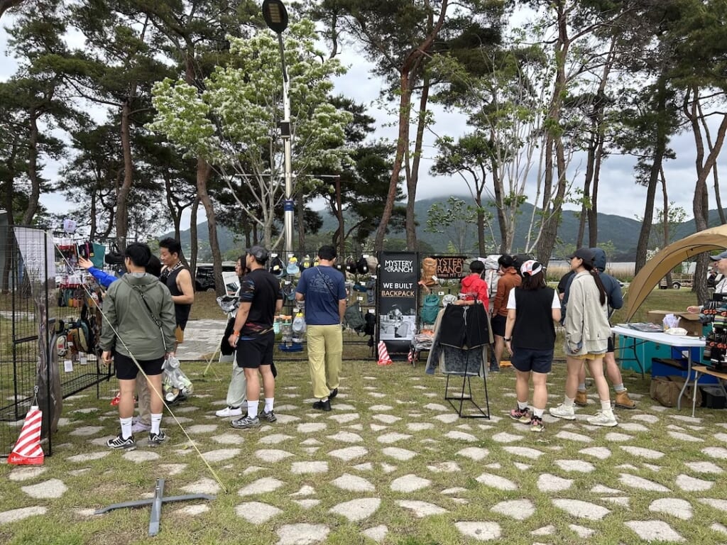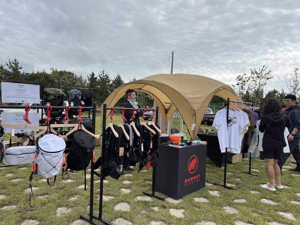 そのほかアウトドアメーカーのブースも展開。皆さん、結構買い物されていましたよ。
