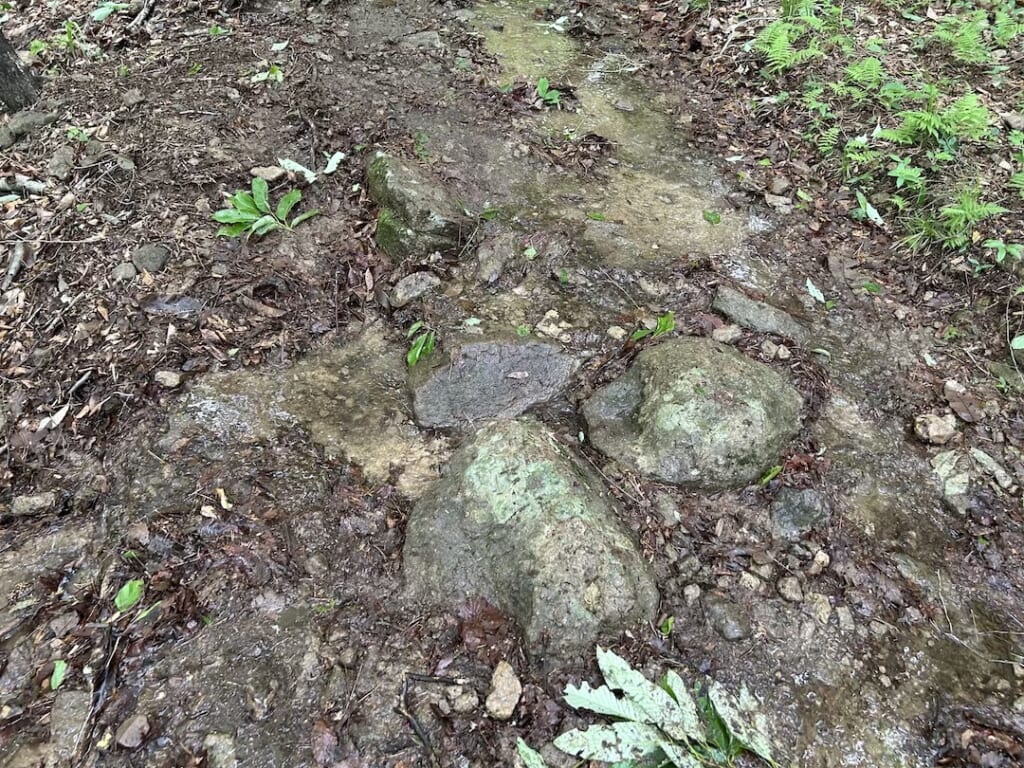 トレランの人たちが出た後、記念撮影をしてからついにスタート。500名がゆるーく、順に歩いて行きますが山道に入った途端大渋滞。こんな時も皆さん笑顔で、撮影したり配信したりしつつ、のんびり自然道へ突入して行きます。