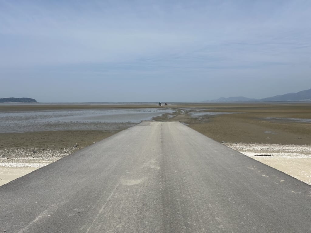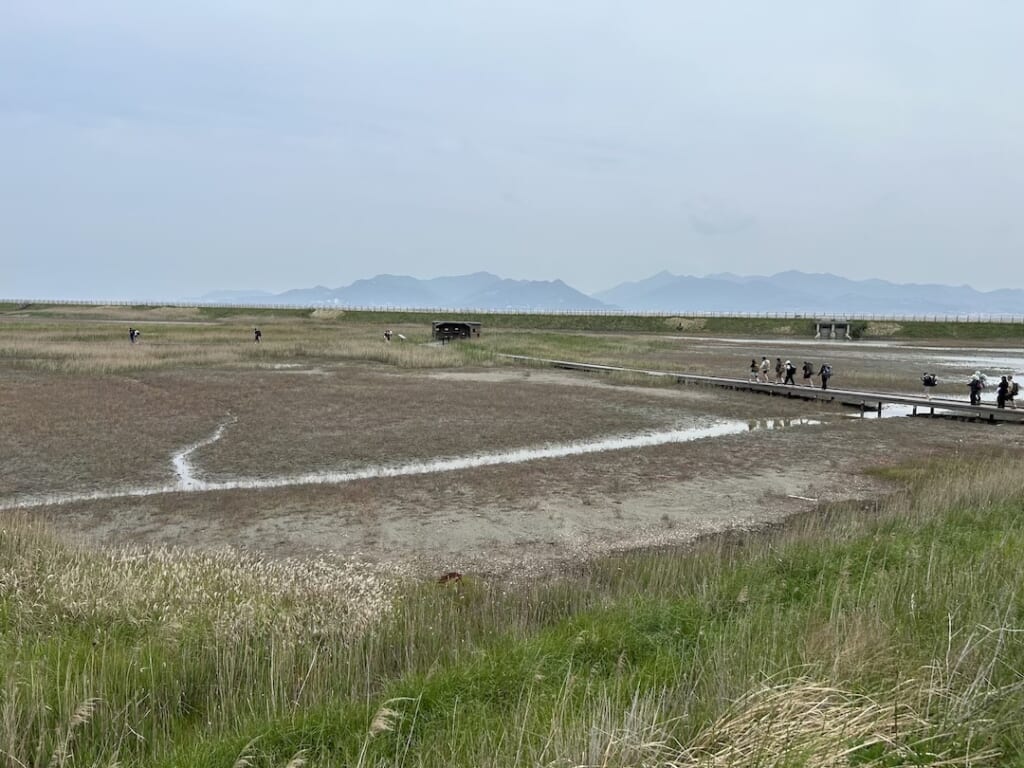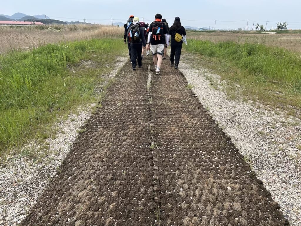 のんびりしたペースで2日目がスタート。ユネスコの世界自然遺産にも登録されている韓国の干潟を歩くコースです。その干潟の中の遊歩道をのんびり歩く、これぞ想像していたハイキングです! 海からの風が心地よくゴールに向けて疲れも吹っ飛びました。