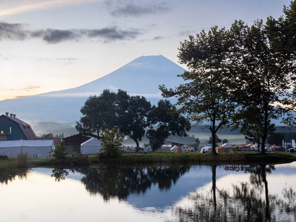 そして2日目は、ふもとっぱらから陣馬の滝まで片道約5 kmの里山へ。自然の美しさはもちろん、土地に息づく文化や暮らしも感じられる道のりとなっている。再びふもとっぱらに戻ってきたら、シャトルバスが出発地点の精進湖民宿村まで送迎してくれる。