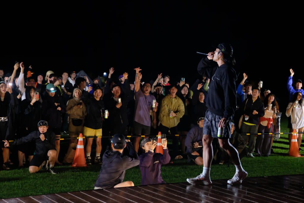 2日目は雨と霧に包まれた中、予定コースの半分のみを進む特別な一日。テントの中での安らぎ、キャンプサイトに漂う温かな食事の香り、アディダス テレックスなどのブランドによるポップアップ、韓国ヒップホップアーティストのライブ——そのすべてがひとつになり、“自然とカルチャーが共鳴する祝祭”のような時間となった。