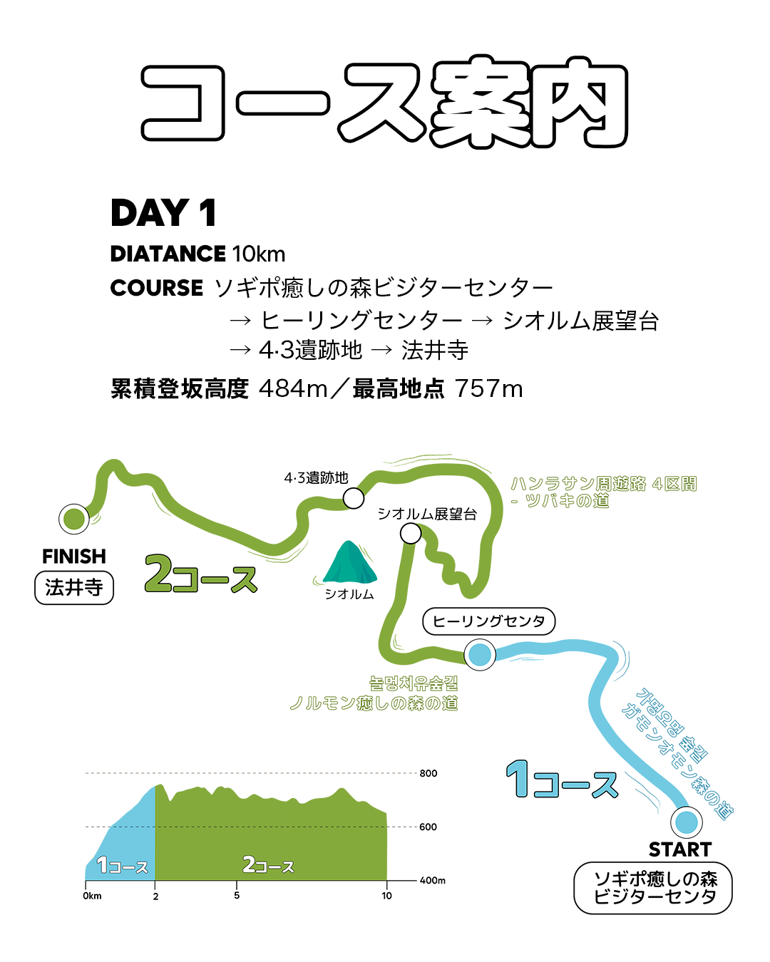 初日はチェックイン後、ハイカーのためのフード&ギフトを受け取り、森の中のトレイルへ。漢拏山の外輪をめぐるルートでは、チェジュ島の雄大な自然とともに、火山の息吹を肌で感じることができた。
