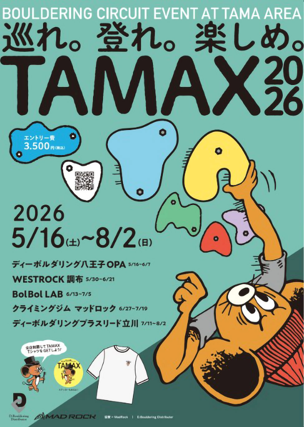 多摩エリアのボルダリングジム5店舗を巡る周遊型イベント「TAMAX 2026(タマックス2026)」が、2026年5月16日から開催される。
