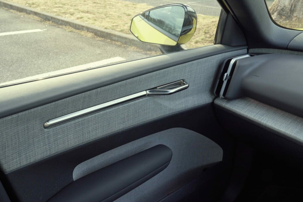 スカンジナビアデザインの家具のように、ぬくもりのあるモダンな外装は、EV特有のグリルレスのフェイスを活かしたクリーンなデザインに仕上げることで、塗装済みパーツの削減を実現し、バンパーガードも無塗装とすることでリサイクルしやすくしています。
