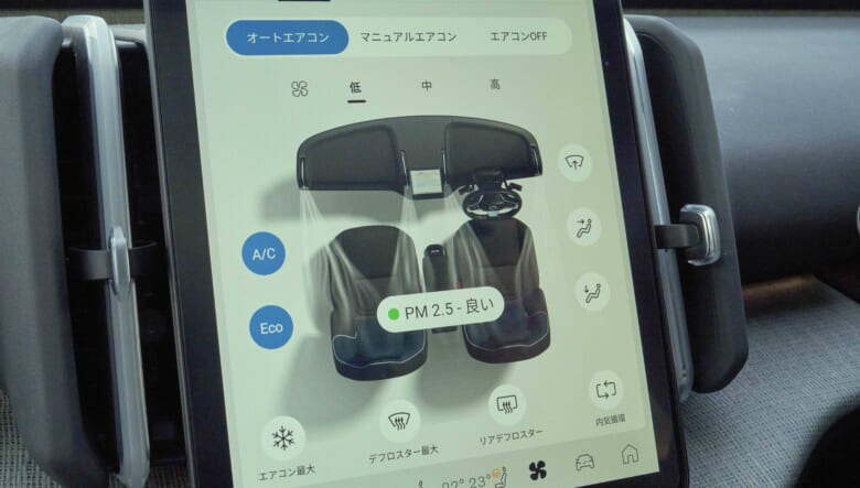 東京・青山までの約300kmのロングドライブでは、エアコン、シートヒーターも使いながら、まったくバッテリーの心配なく到着。撮影のために高速のサービスエリアの充電スタンドを利用したけど、実際には充電せずとも到着できたはず。