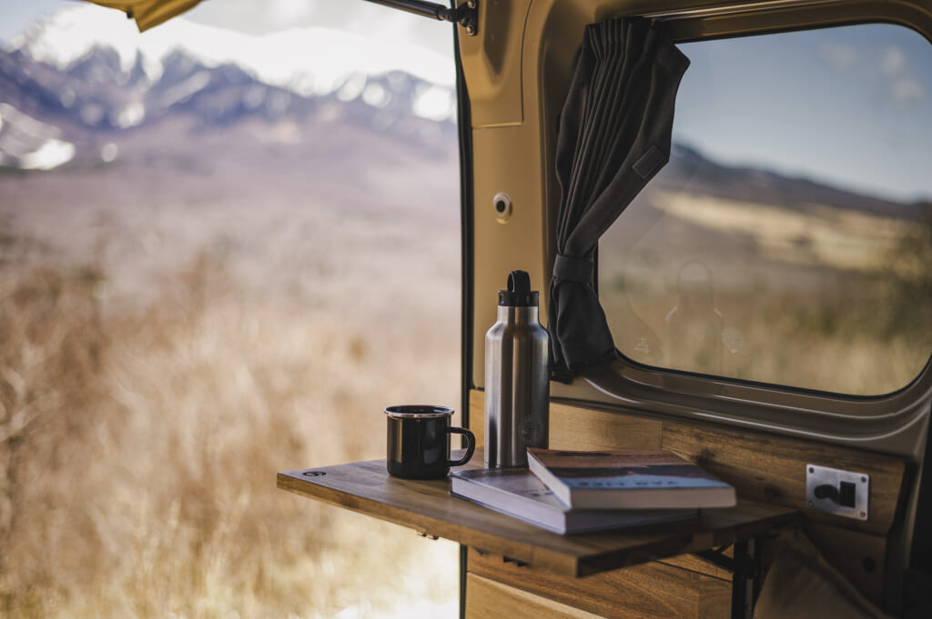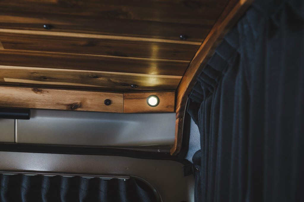プライベート空間を作るために欠かせないカーテンは車中泊で必須! 後付けは手間がかかるので初期装備は嬉しいところ。