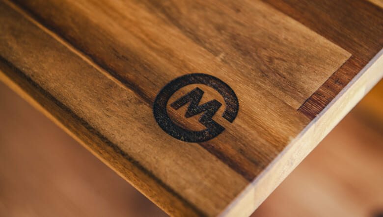 左右にセットされた収納式テーブルはレジャーの際に活躍! 天然木材で質感も高く、通常仕様(S-01)にはないGMロゴが刻印されている。