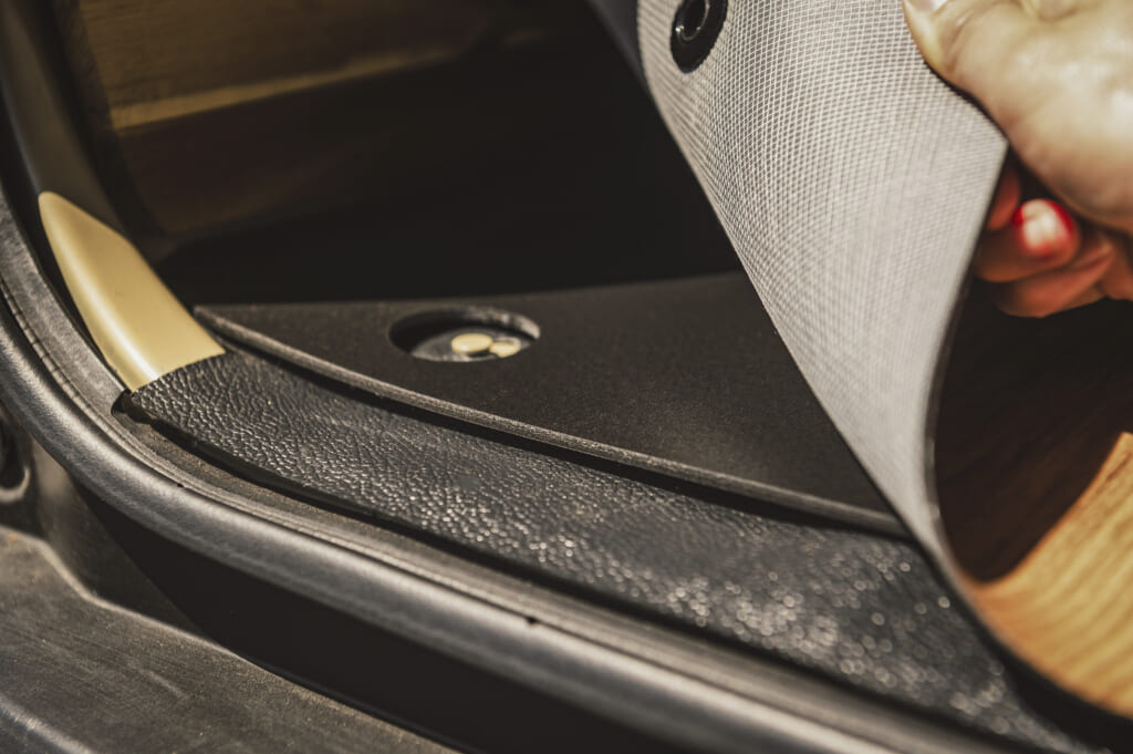荷室では、木目シートの下にフラットシートを敷いて凹凸を極力なくす試みも! ギアやファニチャーをみっちり積載するキャンプにおいて、荷崩れしにくくなるのはありがたい。