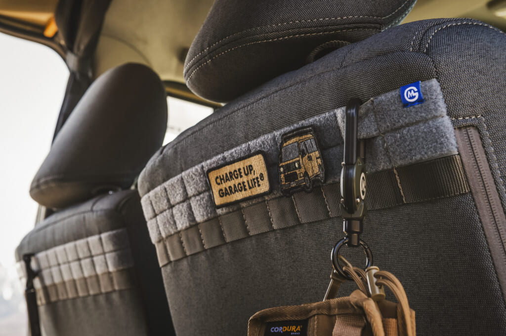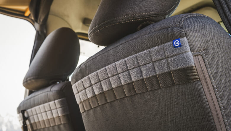 さらに、前席の背面には大型ポケットとモールシステムを採用。モール対応のポーチやカラビナを取り付けられるうえ、面ファスナー部分にはベルクロパッチを貼り付けてカスタム可。