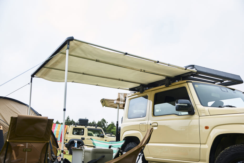 【’21 JIMNY JB64 】ルーフラックに内蔵されたオーニングで、愛車一体型キャンプ。