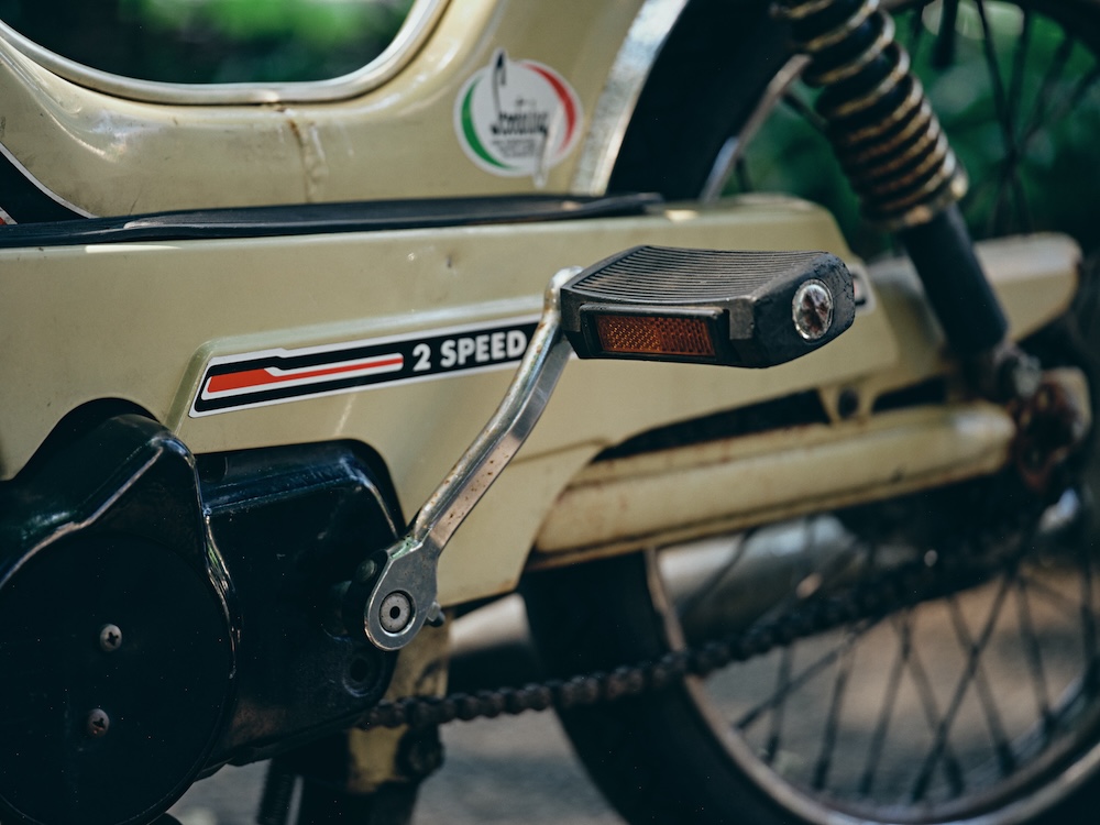 3年ほど前に中古で購入してバイクライフを堪能していたものの、日常使いに支障が出るようなトラブルもあって乗れない期間もあったそう。「もともと古い設計なので、給油する時は混合オイルですし、手がかかることもありますが、これからもモペットのある生活を楽しんでいきたいです」。