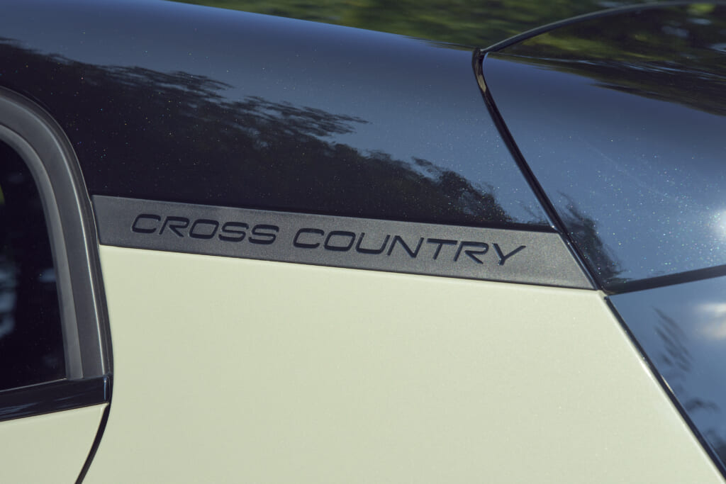 後席窓後ろのCピラー、リアバンパーに入るCROSS COUNTRYのロゴ。見覚えのある歴代モデル同様のフォントを用いているところも見逃せない。