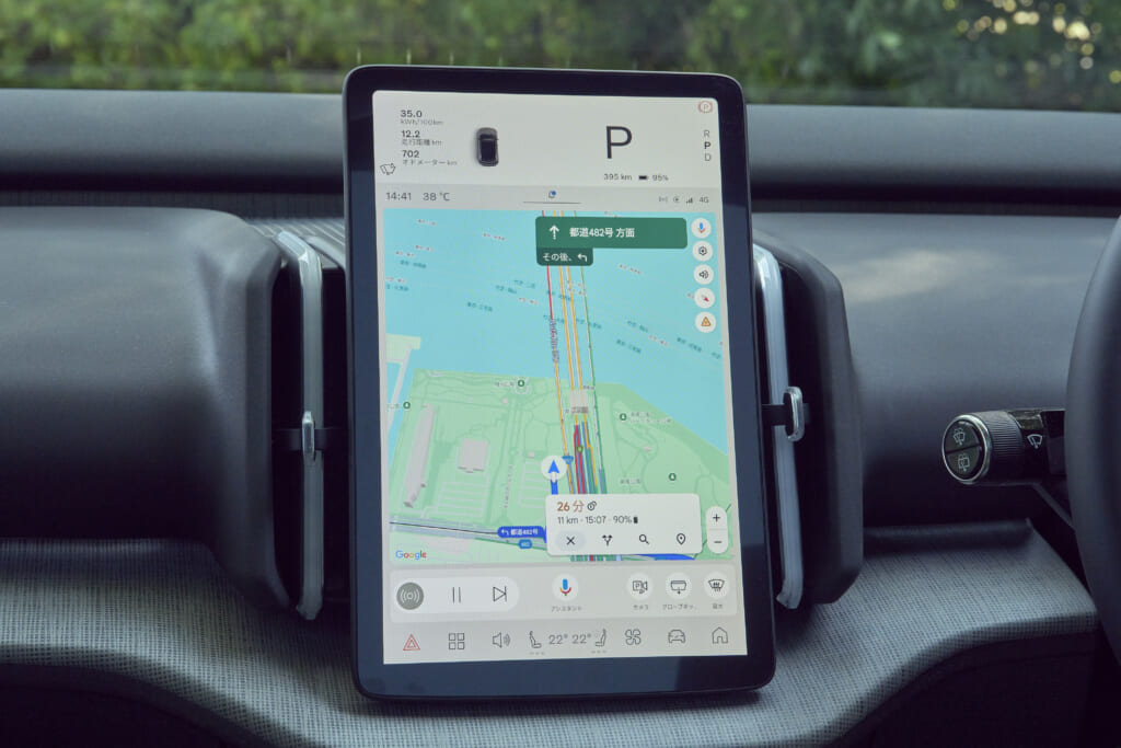 物理ボタンがなく、センターディスプレイにすべてを集約したコックピットは、直感的に使えるうえに、慣れてくるとさらに使い勝手がよくなり、とくにGoogleをデフォルトで搭載しているので、Googleマップの操作がとてもスムーズだったことも好印象。