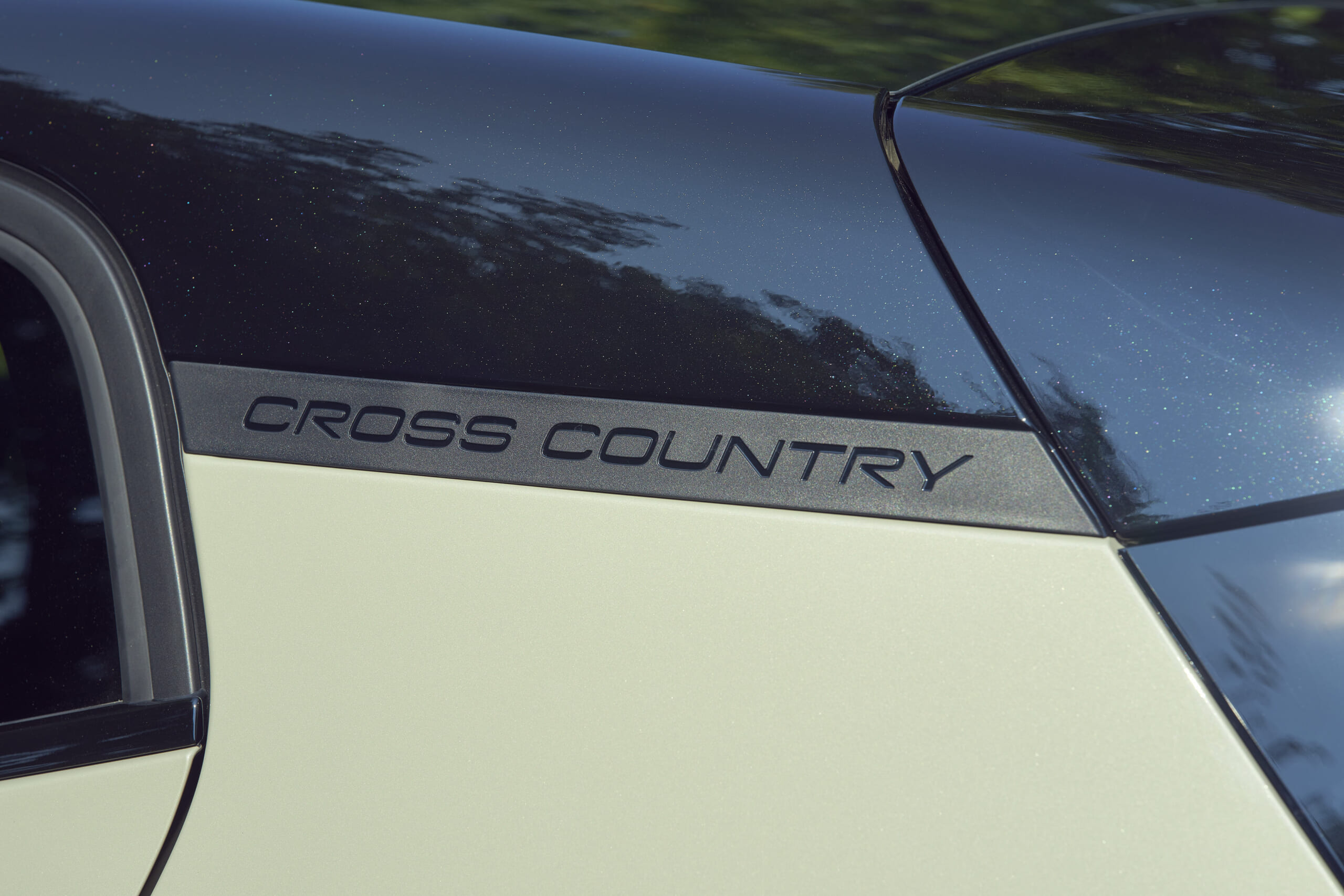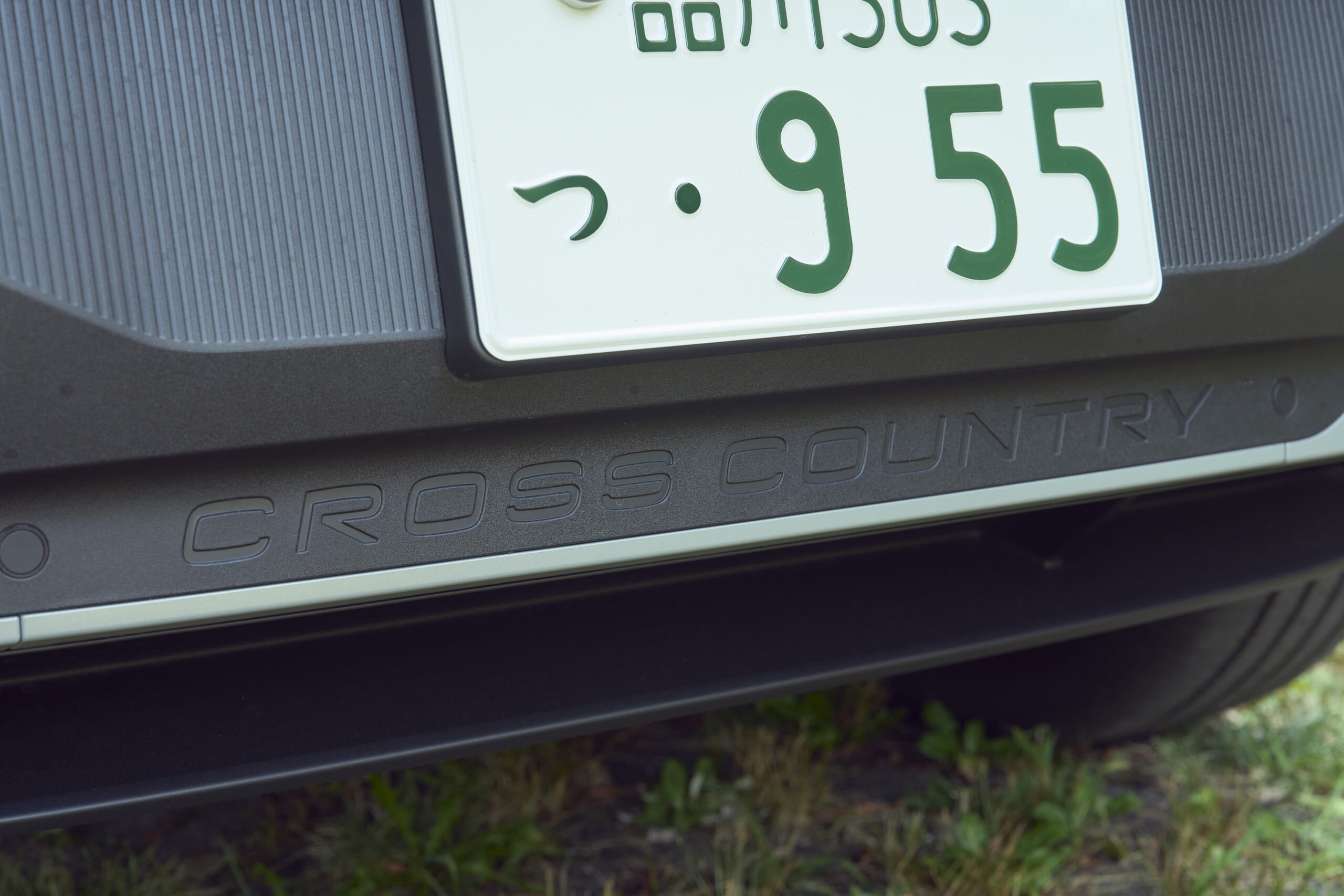 後席窓後ろのCピラー、リアバンパーに入るCROSS COUNTRYのロゴ。見覚えのある歴代モデル同様のフォントを用いているところも見逃せない。
