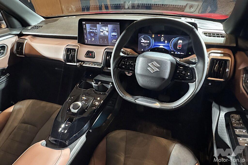 新型「e ビターラ」は、スズキが世界に向けて出す初めての電気自動車シリーズの第一弾。「Emotional Versatile Cruiser(感情を揺さぶる多用途なクルーザー)」という商品コンセプトで作られており、電気自動車の新しい雰囲気と、SUVらしい力強さを両立させている。