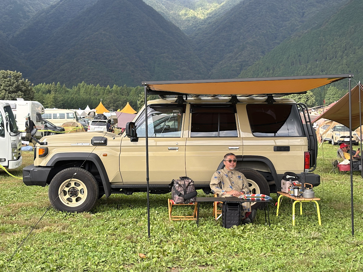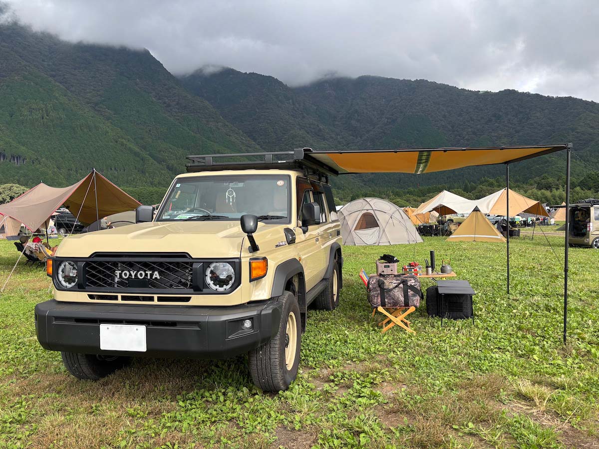続いて、サイドオーニングを取り付けたキャンパー仕様のランクル70を発見。TOMOさんは、VWシャラン、150プラドと乗り継ぎ、ランクル70にたどり着いた。納車は2024年9月というから、発売開始から1年未満で手に入れたことになりますが、その経緯を聞いてみました。