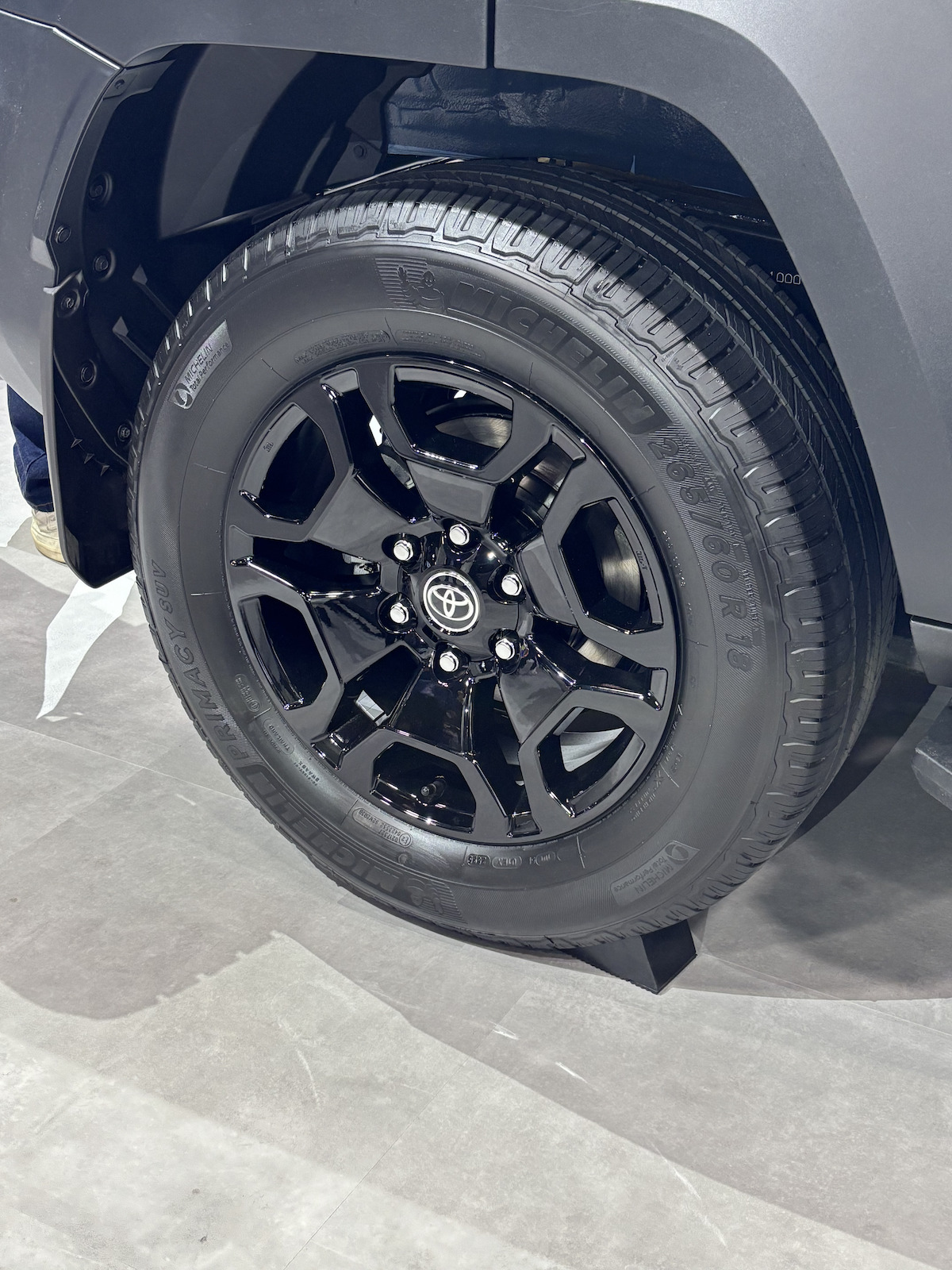 ブラックアウトされたホイールも都会的な印象で、タイヤサイズは265/60R 18。偏平率以外はほぼ250と同じ(グレードによる)で、ボディサイズの割に太くて大きいタイヤが装着されていました。強くて逞しいランクルらしさが表現されつつ、どんな道でも快適に走れそう!