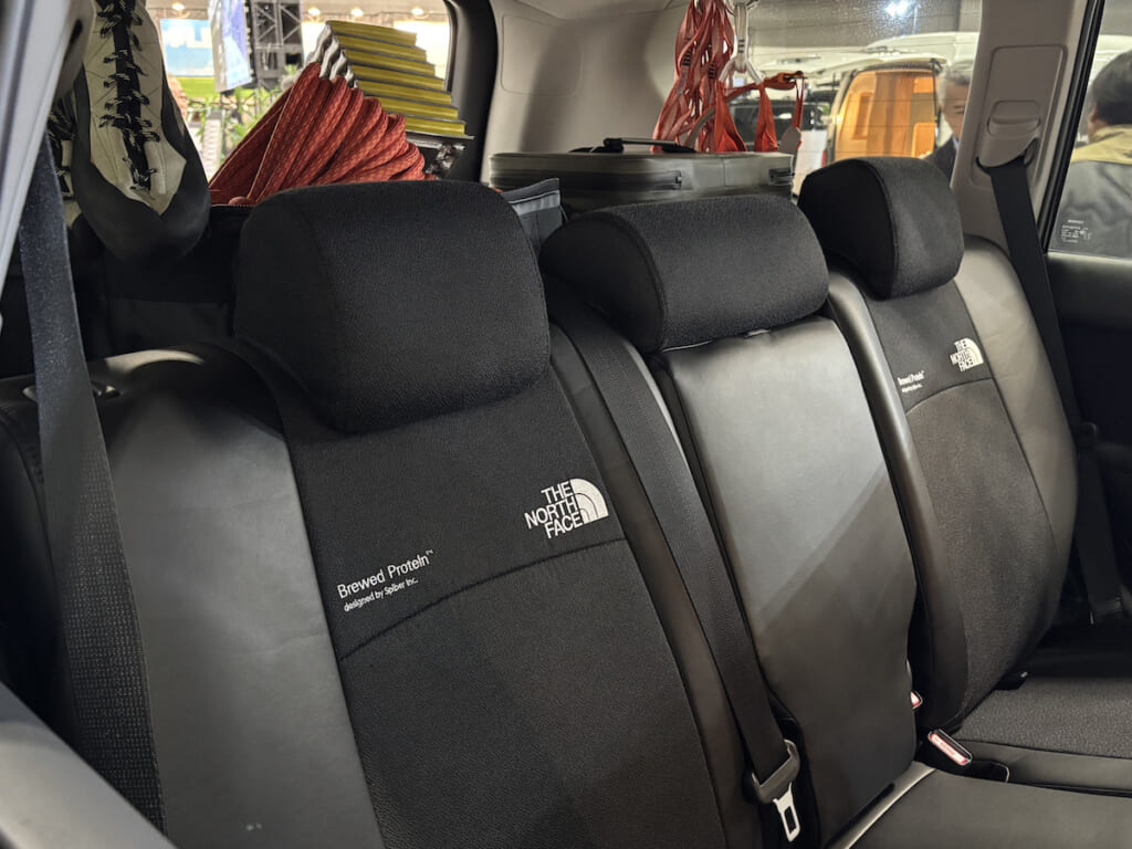 ユーズドの150プラドをベースとしたこちらは、「CORDE by」 が2026年春に送り出すコンプリート車。ご存知「THE NORTH FACE」と山形のバイオベンチャー企業「Spiber」が共同開発した、環境負荷の少ない次世代繊維「Brewed Protein™ファイバー」をシートカバーの一部に採用しているそう。