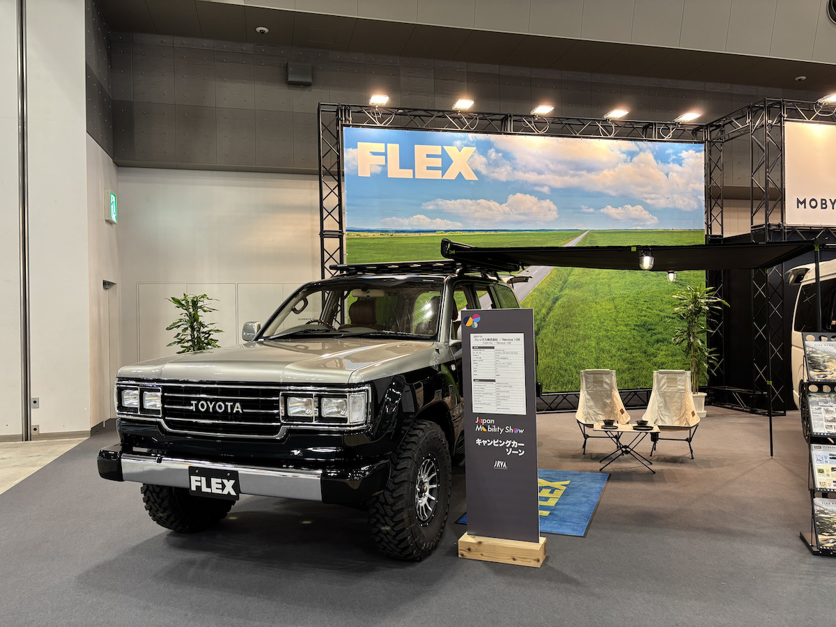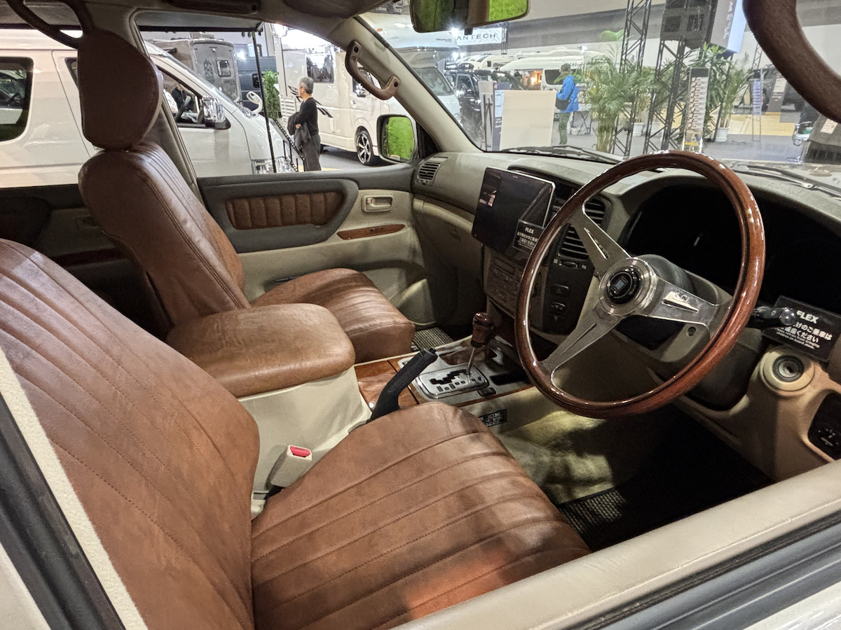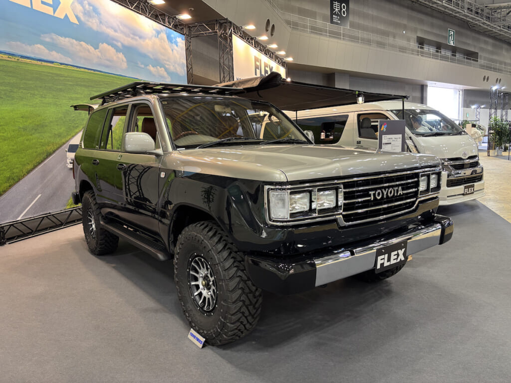 ランドクルーザー100系をベースに、60風フェイスへとリノベーションされたFLEXの「Renoca 106」。角目かつツートーンカラーの男らしさに加え、キャンピングカー仕様となったこちらのクルマも会場で一際目立っていました。見た目はホントに100系?と疑いたくなるくらい、懐かしくも新しいスタイル。
