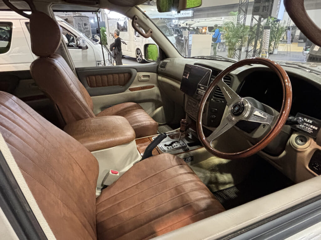 ツボを抑えているというのはまさにこのこと。レザーのシートカバーからハンドル、木製のアシストグリップまで内装もこだわり満載。100系とは思えないクラシカルな雰囲気にうっとりしてしまいます。