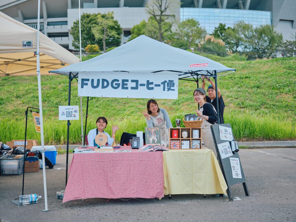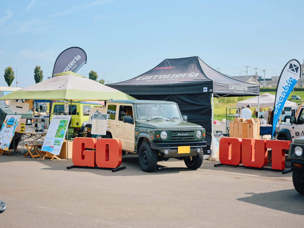 メーカー以外にも、ファッジのブースではオリジナルの豆を使ったコーヒーを配布。晴天に恵まれた当日はたくさんの人が訪れていました。ゴーアウトも編集部号のジムニーと共に参加させていただきました!