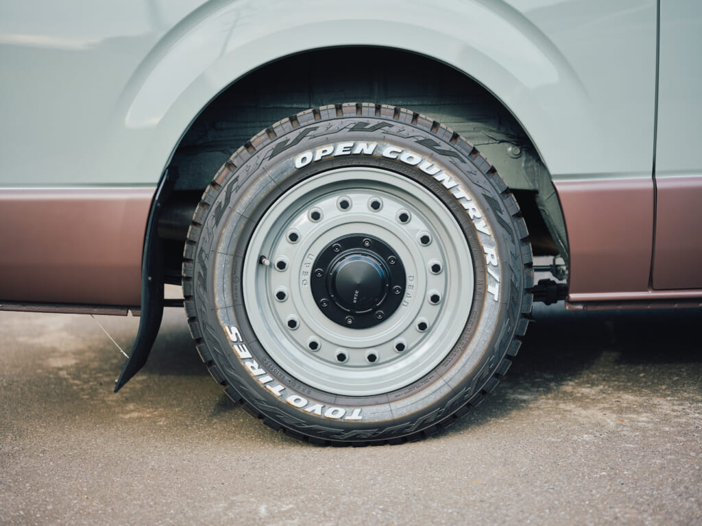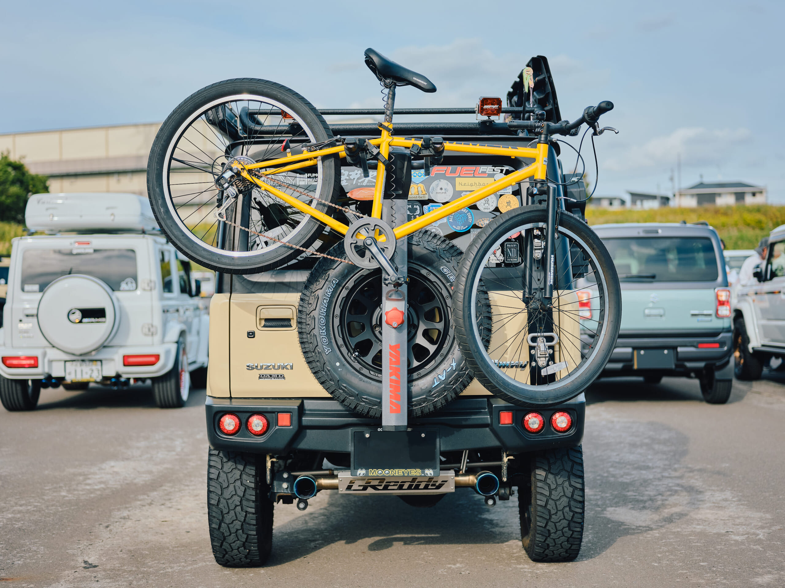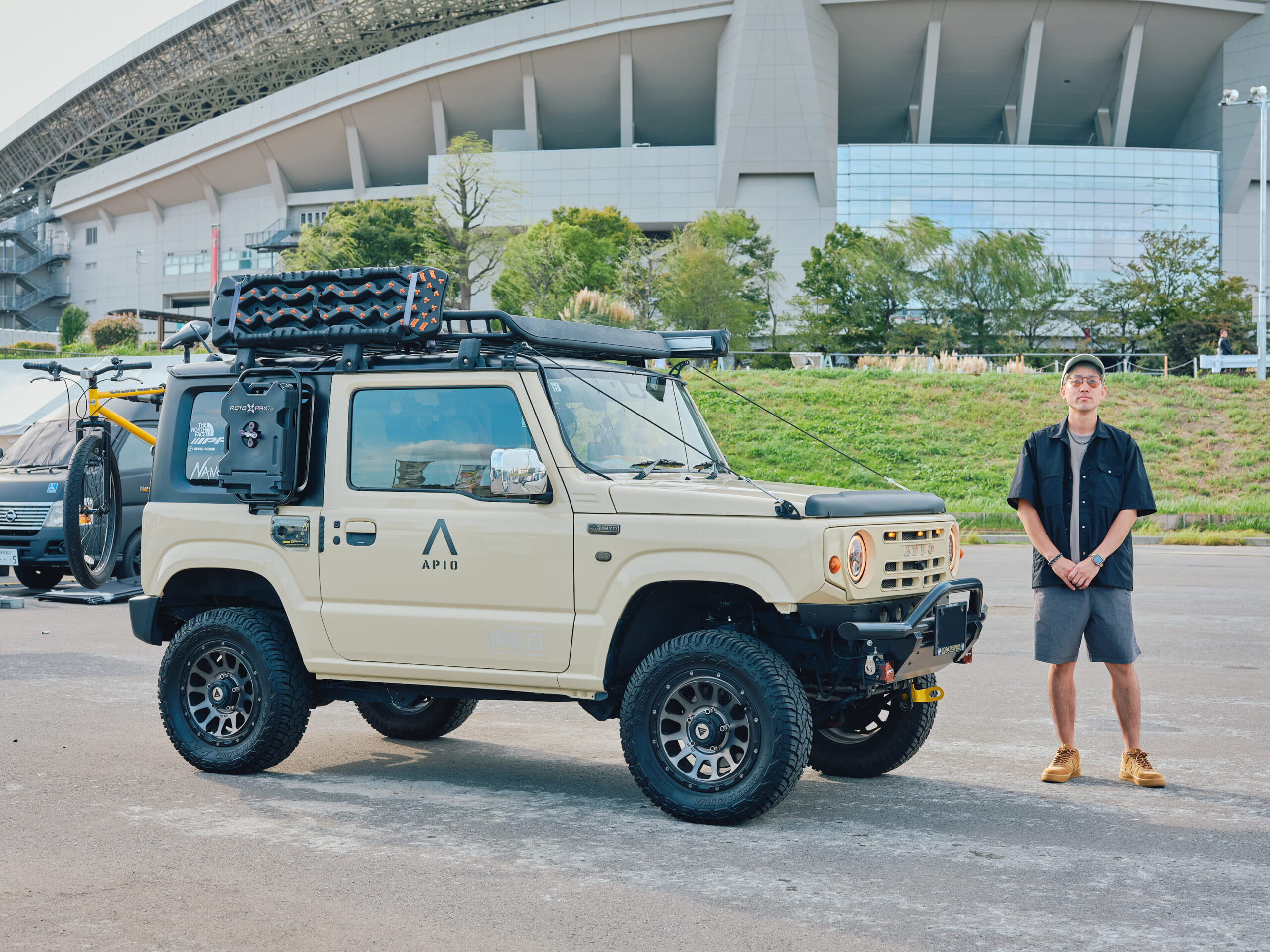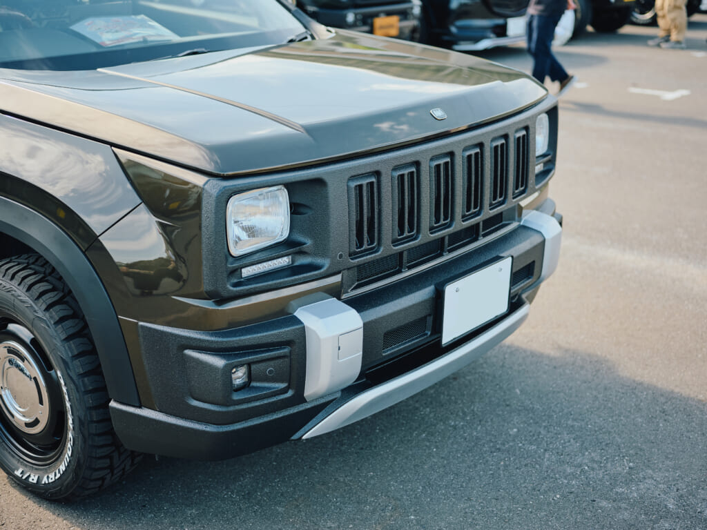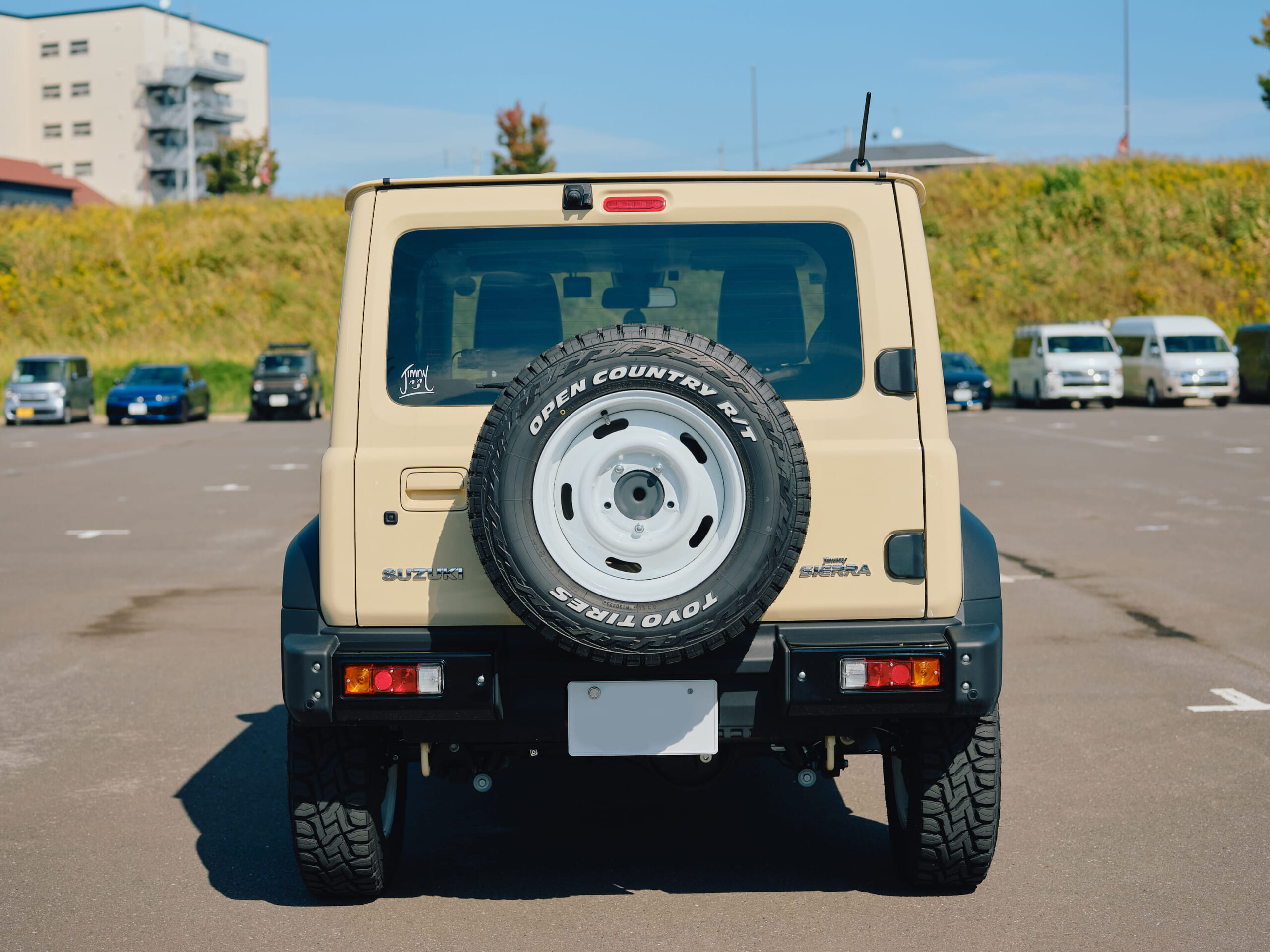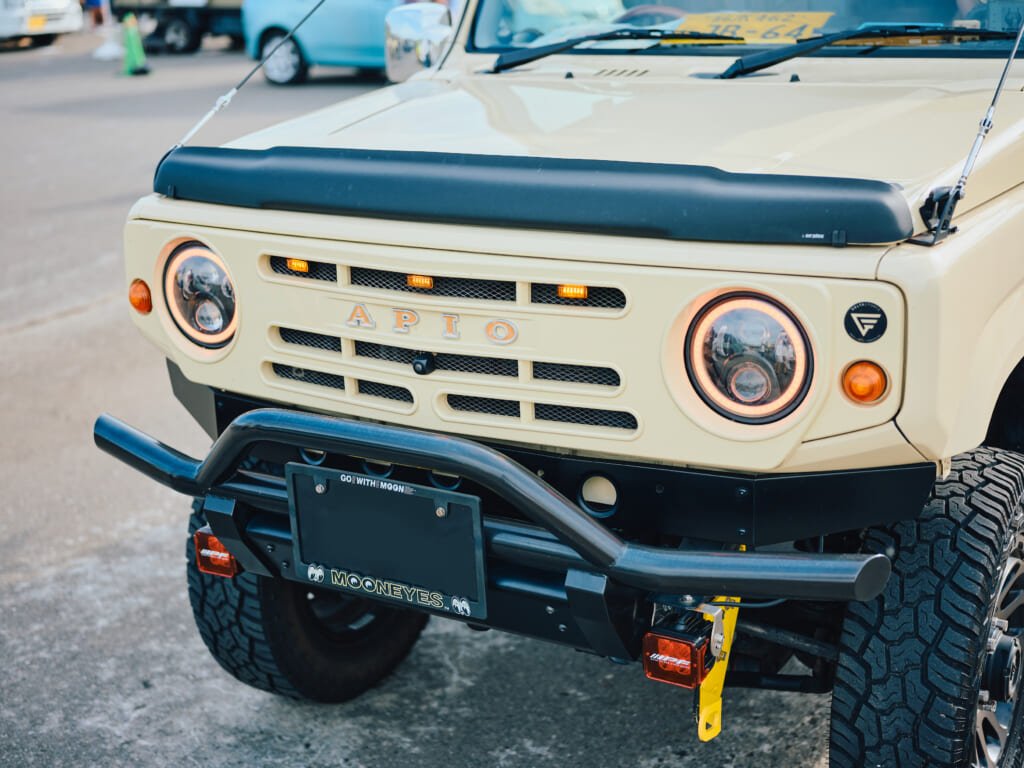 ジープのラングラー サハラをオマージュし、バンパーはフロントをダムドの「リトルD」モデルに、リアを「リトルG」のモデルにチェンジ。グリルはKLCのフェイスグリルSJを選び、ボディカラーに合わせて塗装した。オールドカントリーのホイールを履かせ、ちょいレトロな雰囲気も加えている。