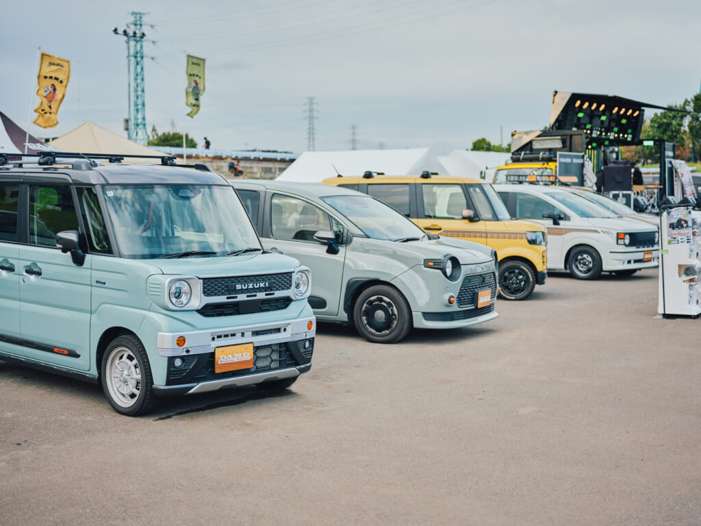 当日はダムドのデモカーの展示も。新作のフリード・アイソレーターがお披露目され、アトレー・ファズやスペーシア ギア・ノクト、N-BOX・アンジーなどの軽から、シエンタ・スチュアートまでさまざまなモデルが一堂に会し、これからカスタムを検討するユーザーさんも興味津々の様子でした。