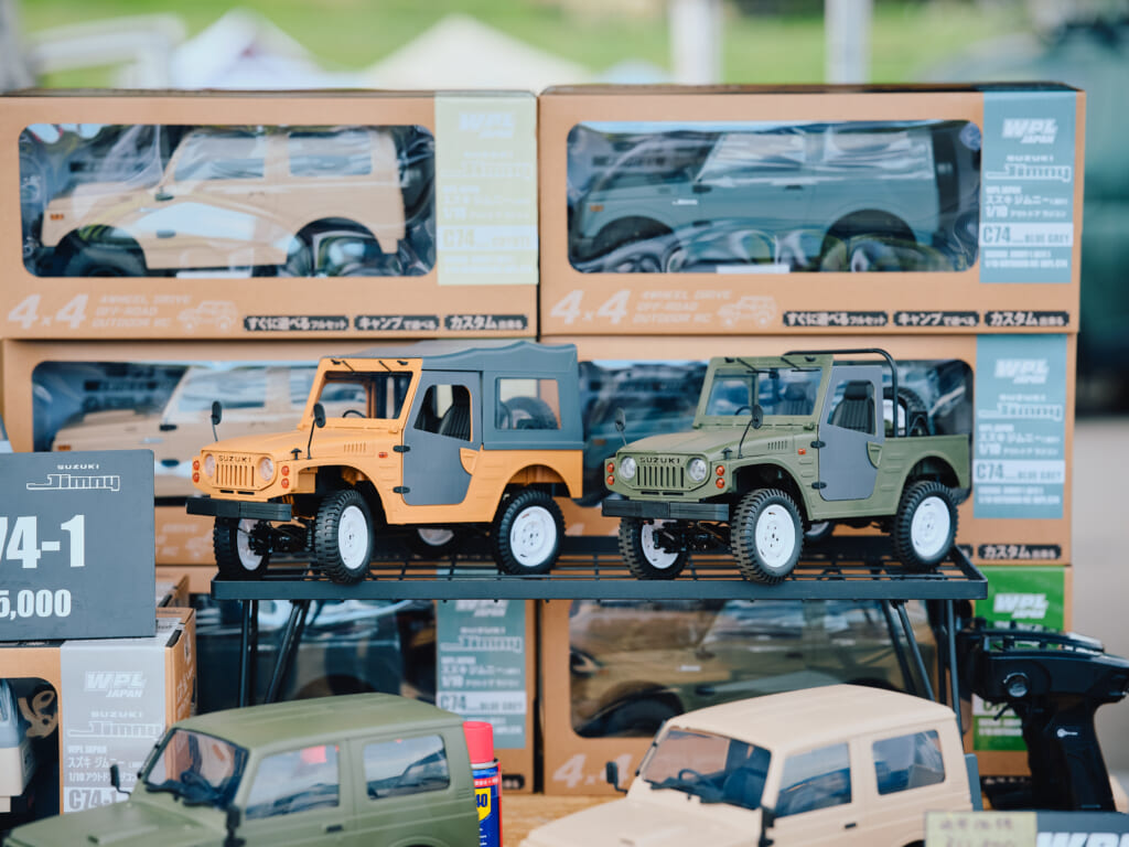 カロッツェリアの最新ディスプレイオーディオと、良い音のカーオーディオを体感できる実車もスタンバイ! そのほかカスタムも人気のラジコン、WPLのブースでは新作の初代ジムニー55などを販売し、実機の走行も楽しむことができました。
