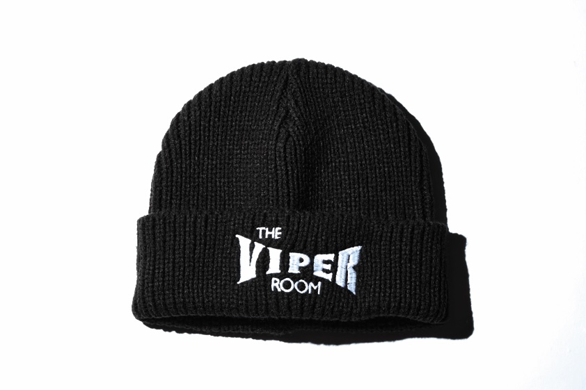 ニットキャップは、ハリウッドセレブ御用達のクラブ“ザ・ヴァイパー・ルーム”のロゴ入り。
