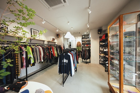 入り口のバイクが目印のROB。広々とした店内には1990~2000年代のアウトドア、ミリタリー、スポーツウエアを中心に日常で楽しめるリアルな古着をセレクト。「ヴィンテージも店頭にいくつかありますが、レアなレギュラー古着が面白いです」。