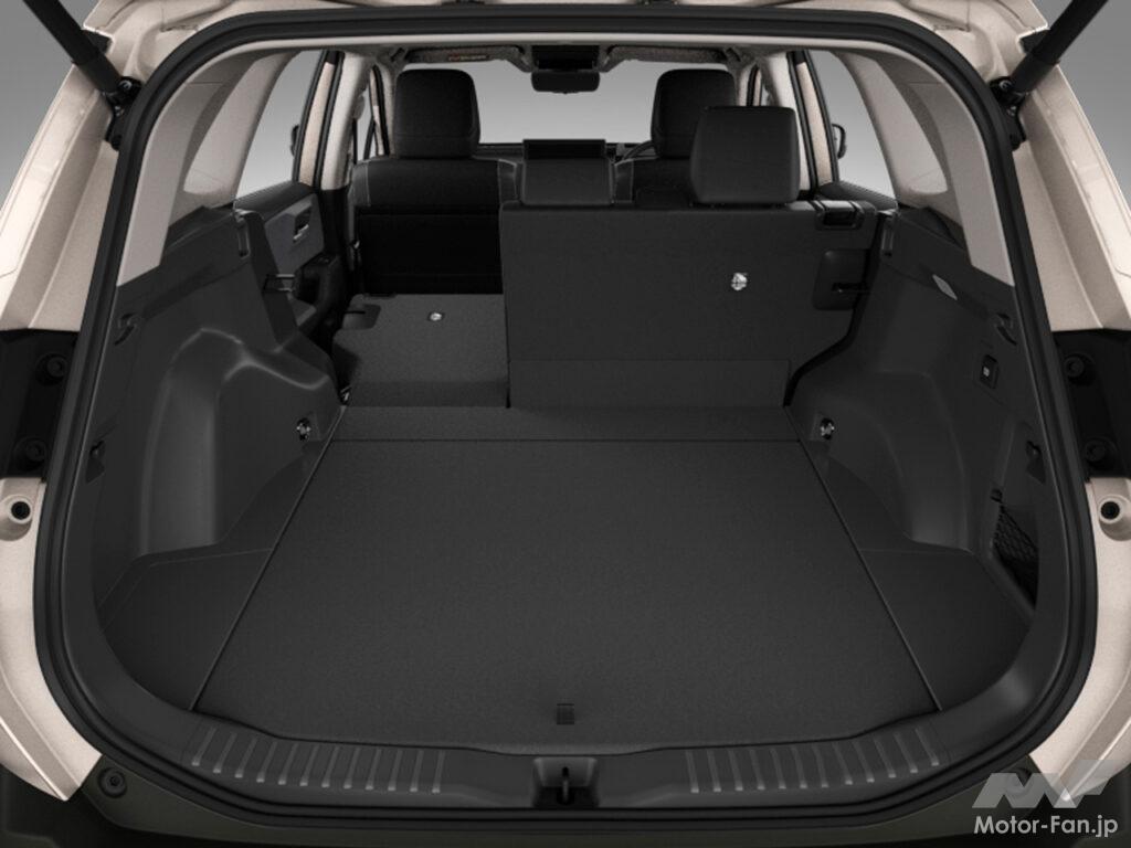「Z」のスリーサイズは全長4600×全幅1855×全高1680mm(※)。ボディサイズはそのままに使い勝手のいい最適な室内空間を実現した。荷室容量は従来の「G」と比べて16L増となる749Lを確保。後席を倒したときの床の傾斜を緩やかにすることで荷室がよりフラットになり、長尺物が積み込みやすくなったのも見どころだ。