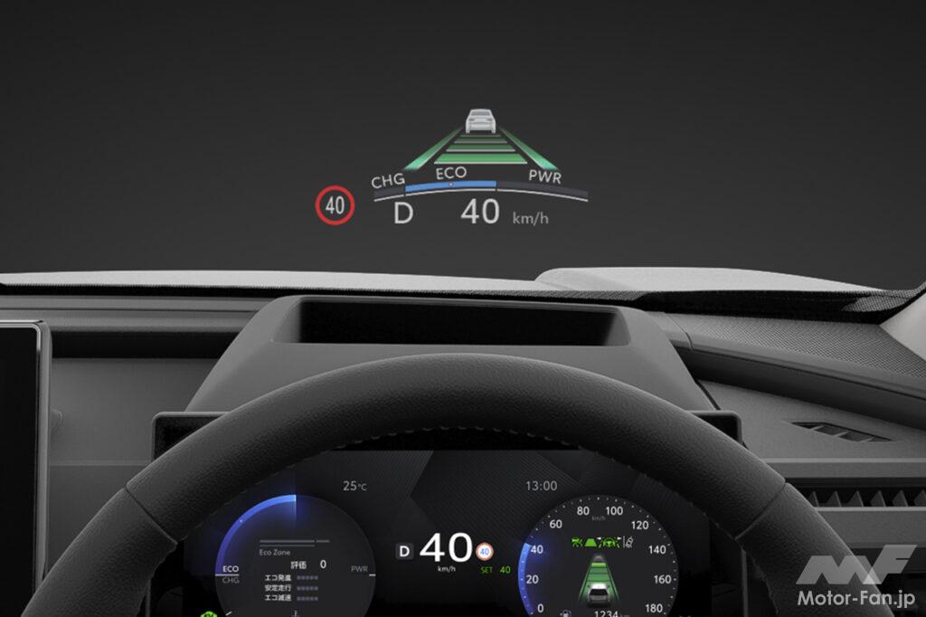 「電動化」では、HEVと新開発のプラグインハイブリッドシステムを搭載したPHEV(2025年度内発売予定)をラインナップし、電動車ならではのシームレスな加速感と力強い走りを実現している。