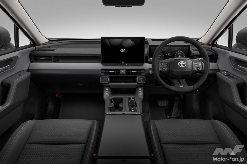 インテリアはドライバーのニーズに応える設計。ディスプレイやシフトなどの各種機能をひと括りにして、島(アイランド)のように配置した「アイランドアーキテクチャー」を採用した。SUVとしての平衡感覚がつかみやすい水平なインストルメントパネルに加え、目線移動が少ないナビゲーション・メーター、手の届きやすいエアコン吹き出し口の配置など、操作性を向上させている。加えて、視認性や操作性を高めるために、以下のようなトヨタ初採用(2025年12月現在、同社調べ)の先進装備が導入された。