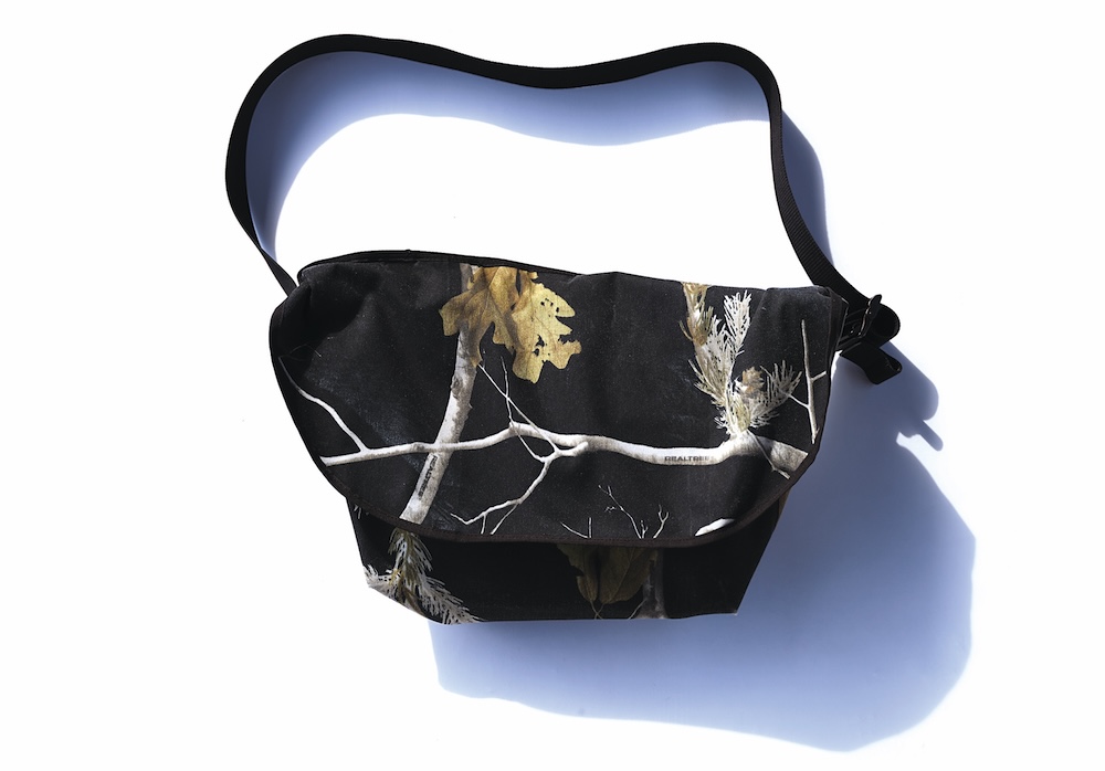リアルツリー柄のメッセンジャーバッグはブルーラグで購入。「普段の通勤は自転車なので、併用しています。バックパックよりも気軽に使えるのが好みです」。