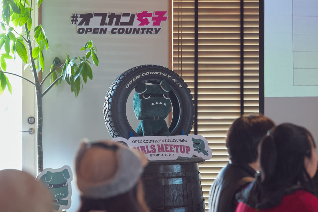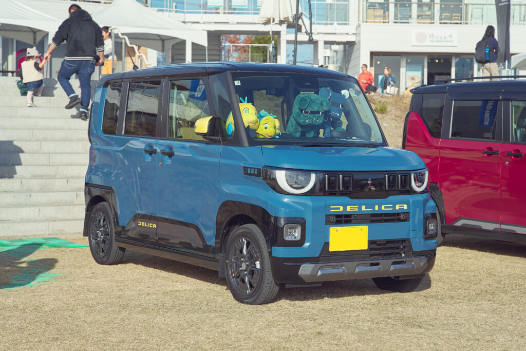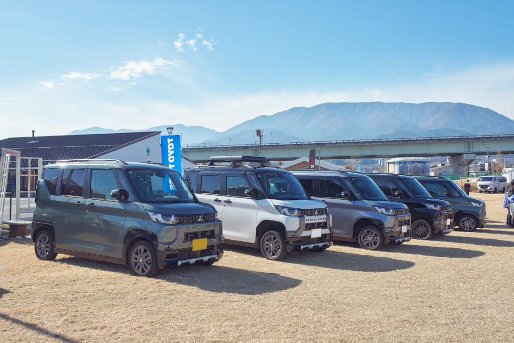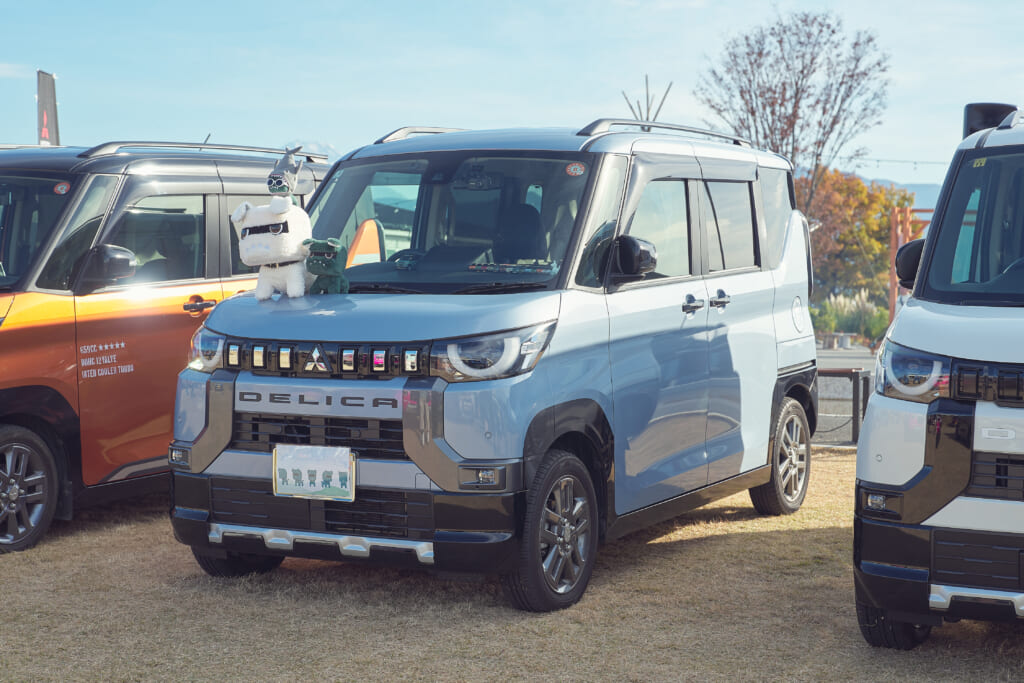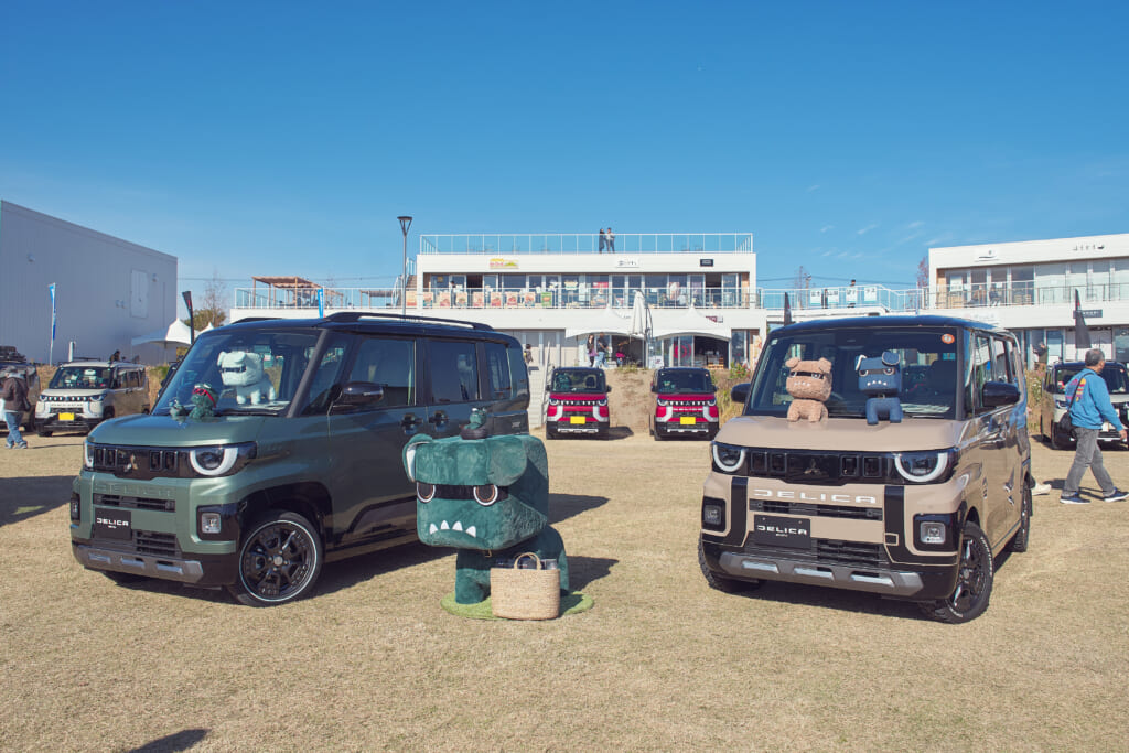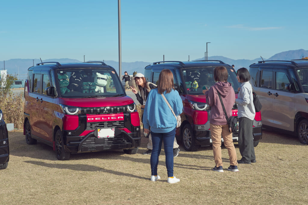 会場には、デリカミニのイメージキャラクターとしてご当地デリ丸。までラインナップするほど人気を集めているデリ丸。の各種ぬいぐるみと共に新型デリカミニが登場し、チャラン・ポ・ランタンのももさんが愛車とするカングー(はろり号)、オープンカントリー H/Tを装着した#オプカンペットのデモカー(#オプカンGOO)のほか、参加者の新旧デリカミニ、ジムニー、ハスラーなどが並び、fumotto 南アルプスを訪れていた一般のお客さんからも注目を集めていた。