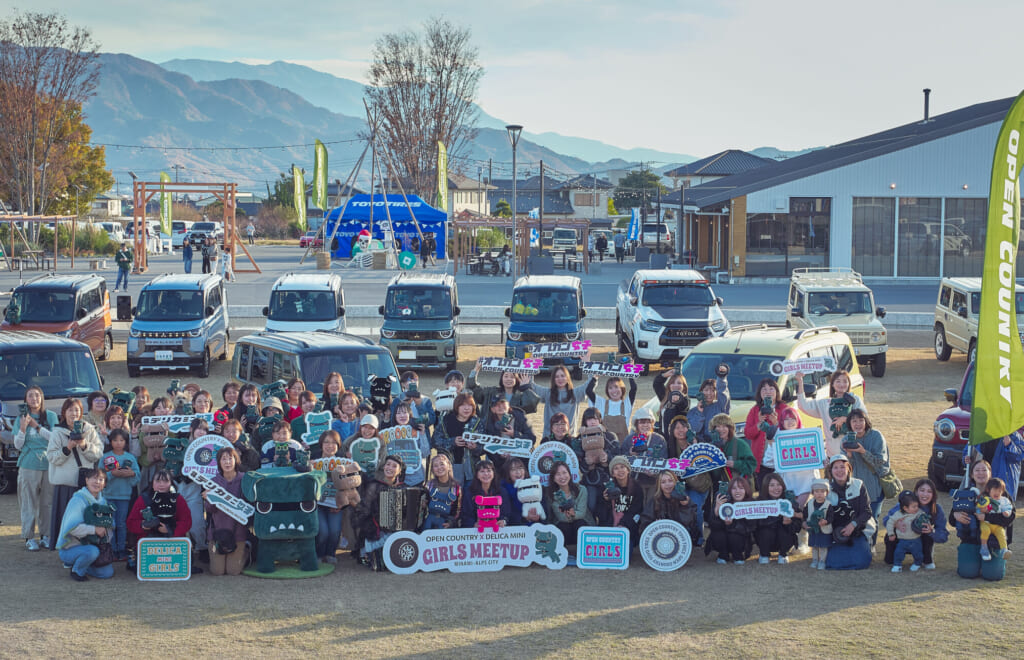 3回目となった女性限定イベントの「#オプカン女子会」は、デリカミニに乗る女子たち「#デリカミニ女子」との初コラボイベント、OPEN COUNTRY × DELICA MINI GIRLS MEET UPとして11月下旬に開催された。当日は#オプカン女子約15台、#デリカミニ女子約30台が集合!