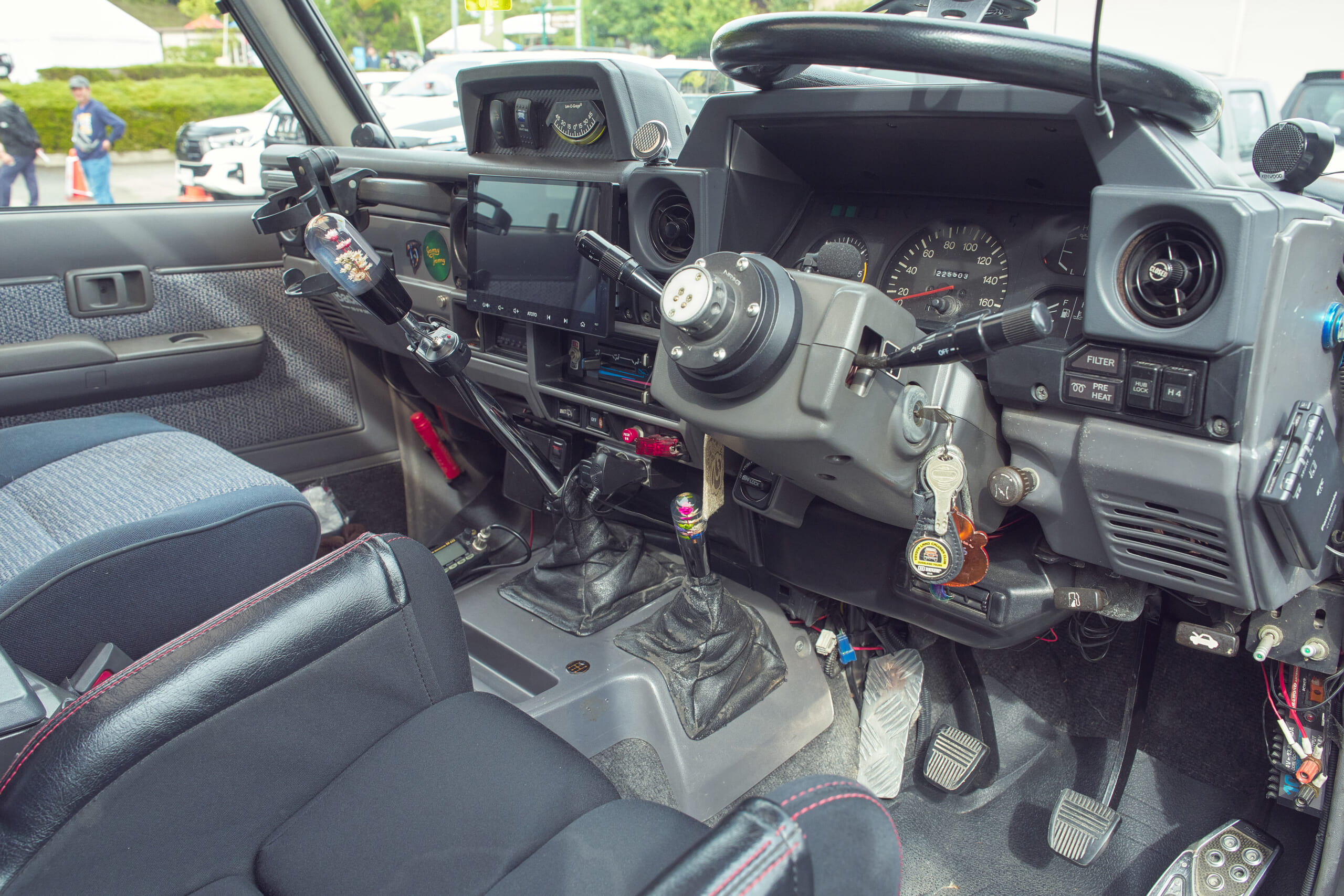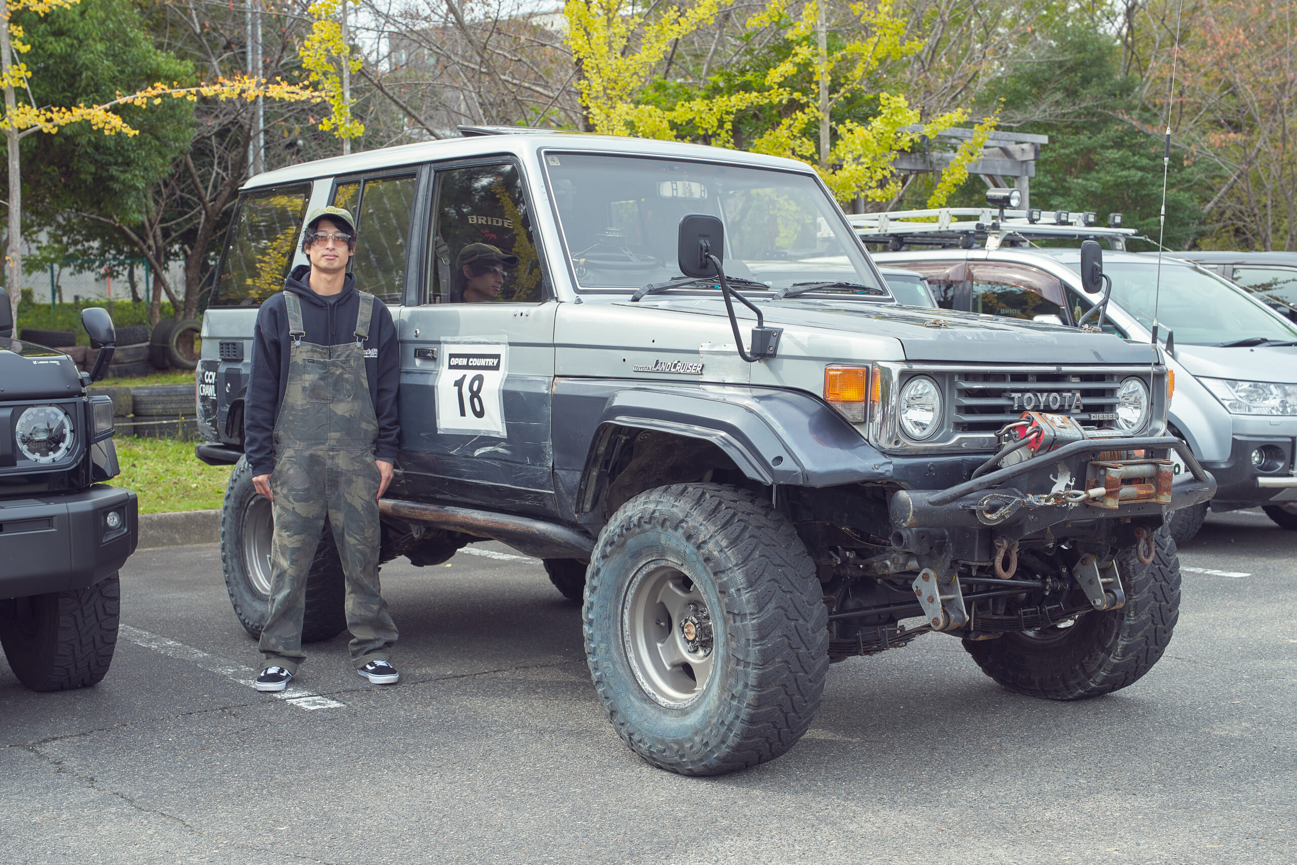 20代半ばにしてガチなクロカン仕様のランクル70に乗るたかまささん。父親の影響でオフロード走行の楽しさに目覚め、18歳の免許取得時に入手したほぼノーマル車をカスタムしていまの姿に。オフロード走破性に優れるオープンカントリー M/T(マッドテレーン)は、意外と街乗りもしやすく、コスパも良しとのこと。