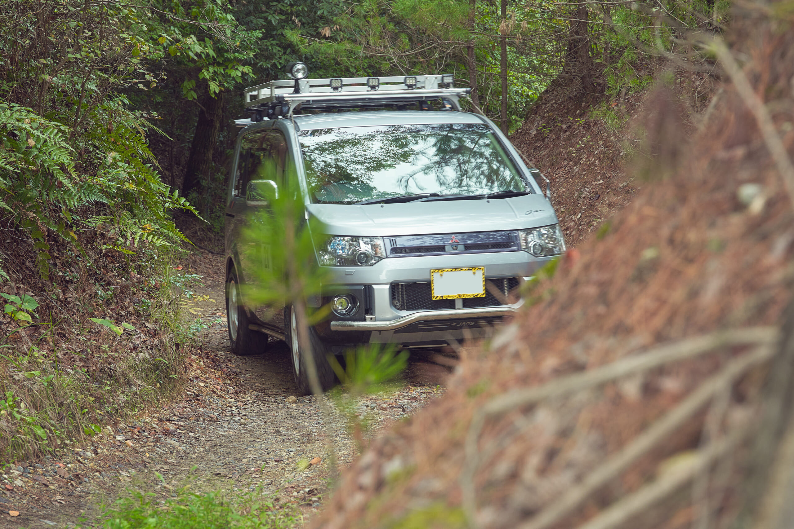 4×4エンジニアリングの鍛造ホイール、ブラッドレー 匠、JAOSのサイドステップ、春日井のショップで入手したULTIMATEのルーフラックなど上質なオフロードカスタムを施しつつ、GRヤリスから乗り換えた愛車遍歴とあって、フジツボのマフラー、車体の水平を保つためにフロントを2インチアップしたタナベのサスペンション、マルチスパークプラグ装着までエンジンチューンも抜かりなし。オープンカントリー R/T TRAILは、オンとオフの走行性能を両立するスペックをよりアグレッシブなデザインに仕上げた最新作。