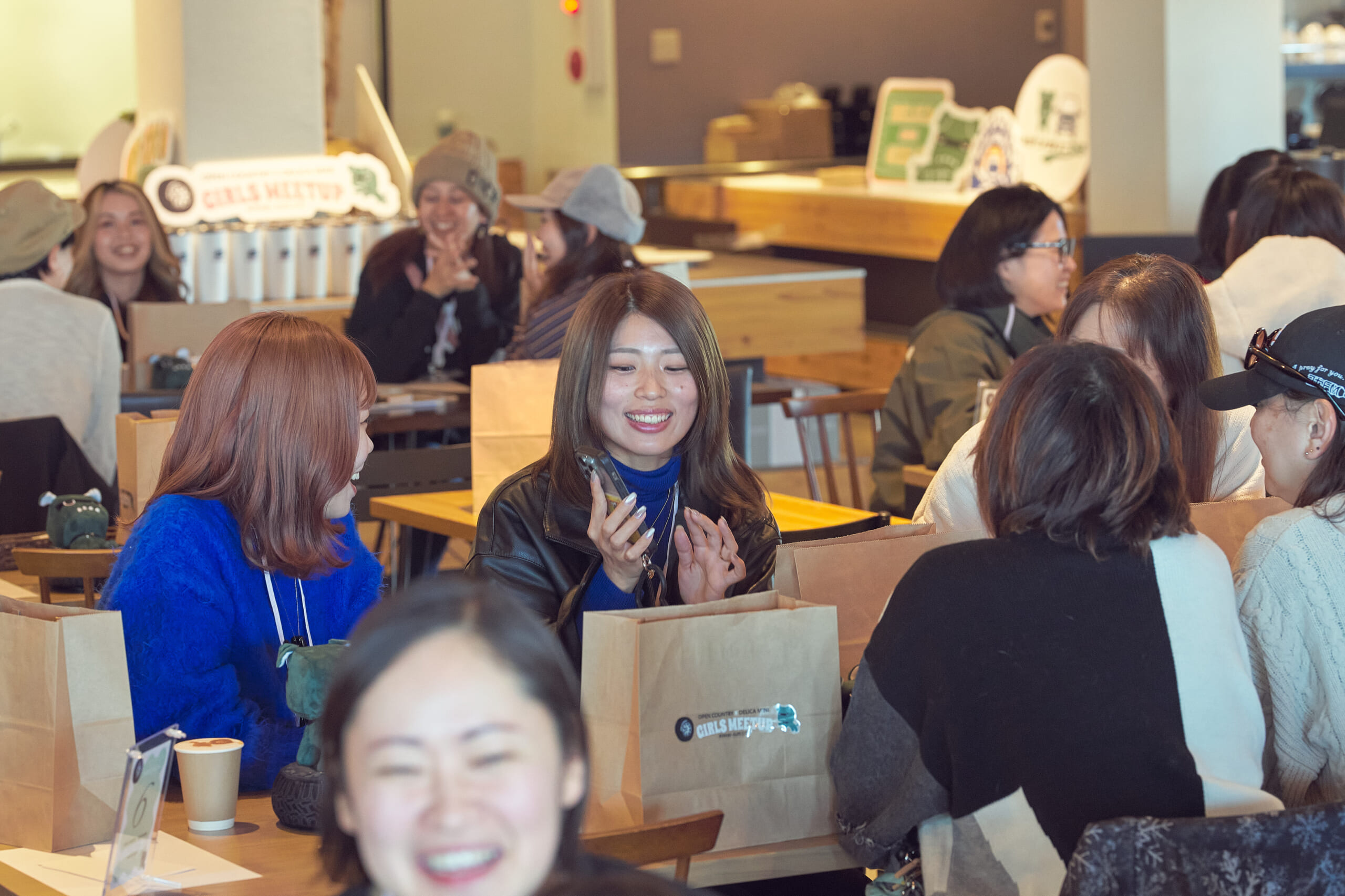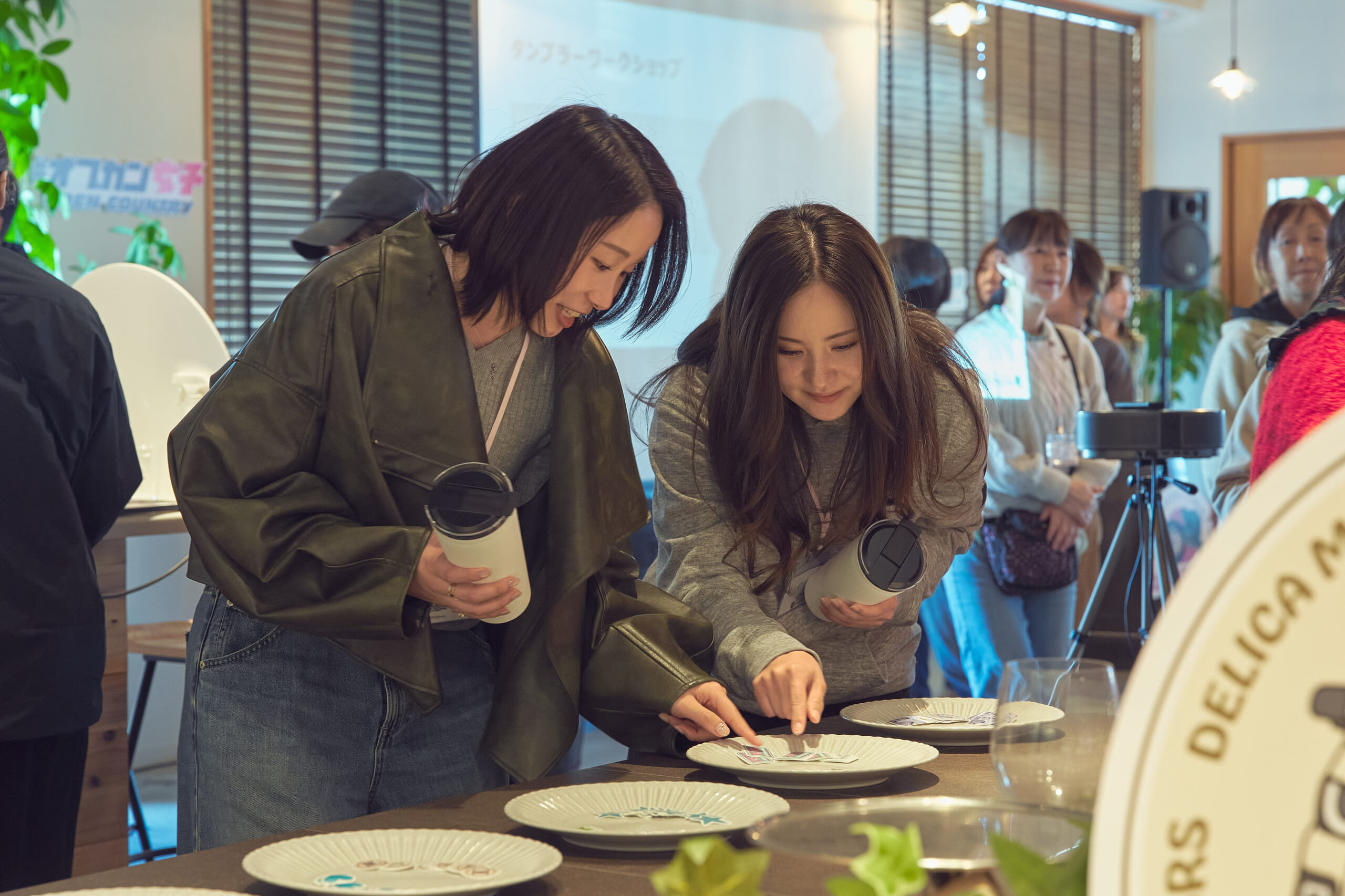 いわゆるクルマ愛好家のミーティグのように駐車場でオーナー同士が談笑して1日過ごすわけではなく…… 、おしゃれなカフェでの開会式からはじまり、#オプカン女子部長のモータージャーナリスト竹岡 圭さんによるデリカミニのCMなどにまつわるクイズ大会、オープンカントリーを履くハスラーを愛車にするZIP-FMラジオナビゲーターの玉置侑里子さんによる“滝”活トークショー、デリ丸。のラテアート、地元野菜とハンバーグのランチ、タンブラー作りのワークショップ、チャラン・ポ・ランタンの生ライブまで、これが女子会か!(笑)と納得のスケジュールがみっちり。