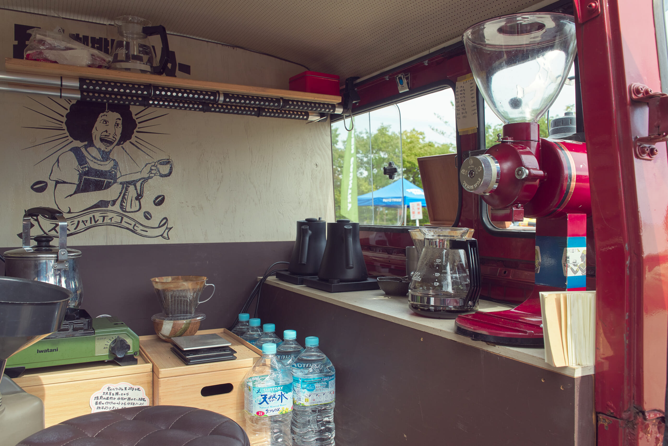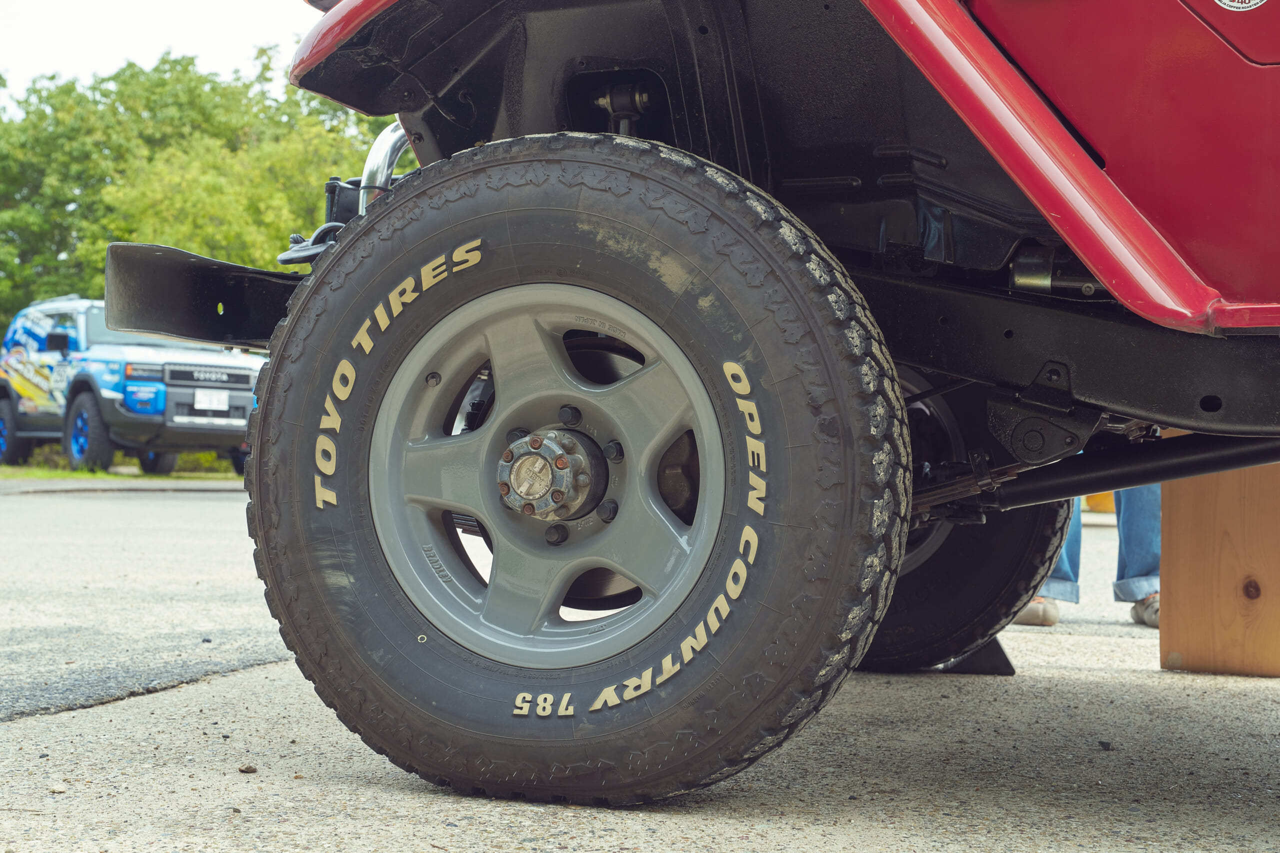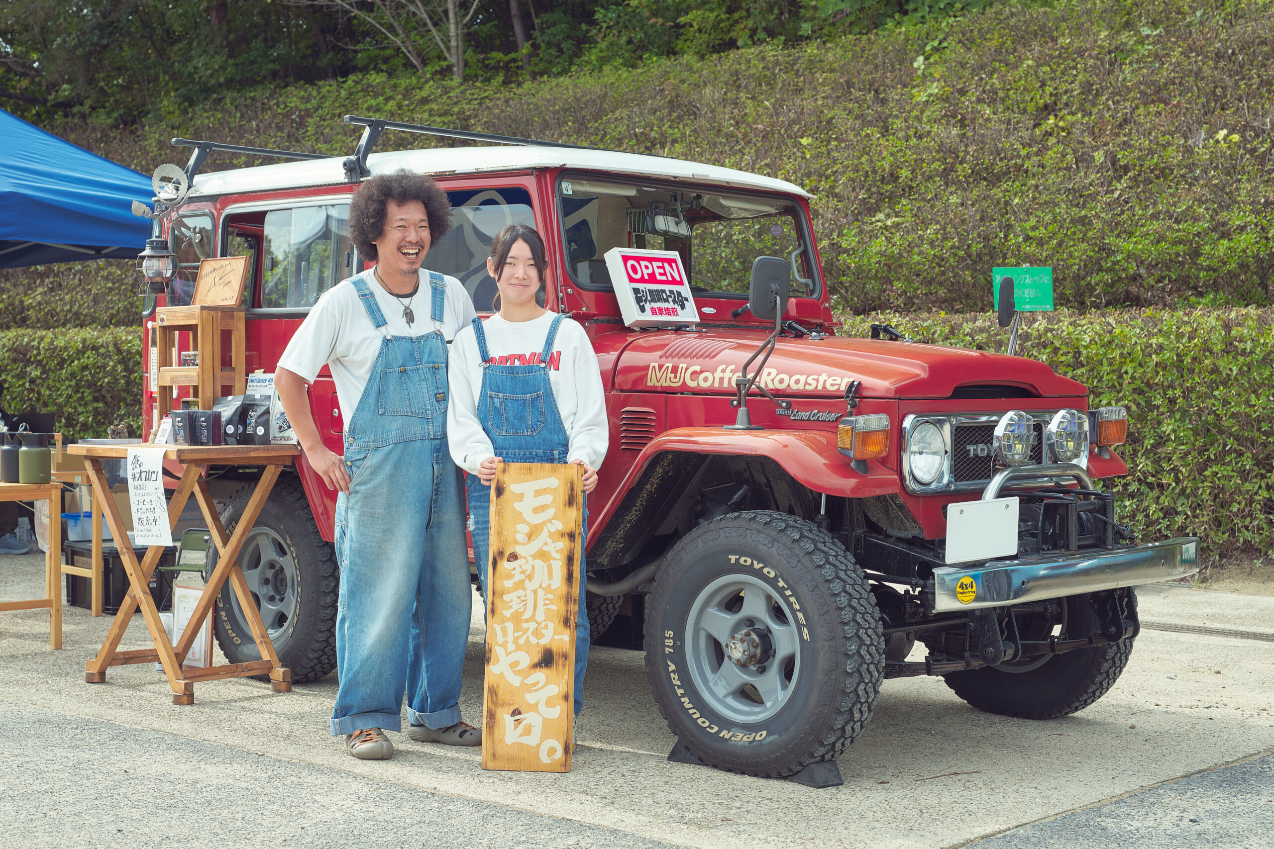 今回の#俺のオプカン〜さなげ場所〜をイメージしたコーヒーを親子で提供していたモジャ珈琲さんが、キッチンカーとして登録するランクル40は最終型のBJ46V。1983年当時のパターンを復刻させたオープンカントリー785は、愛車と同じ年という理由でチョイスしただけあり相性バツグン!