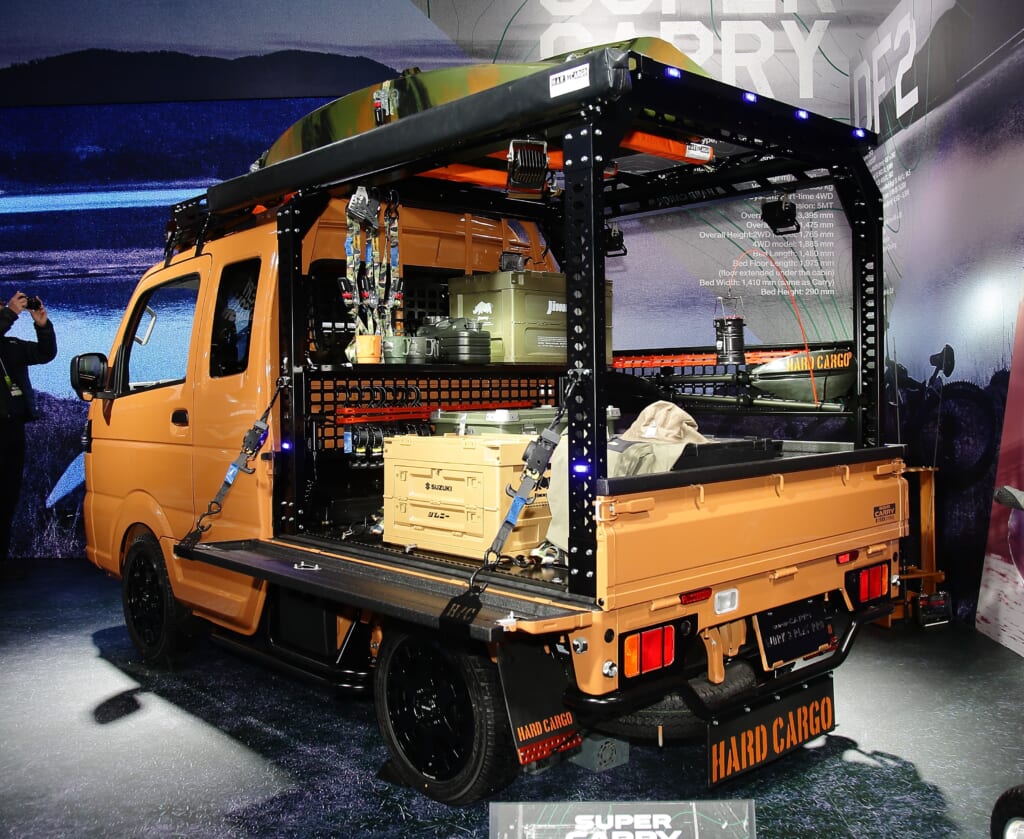 スズキでは『Life with Adventure』をテーマに掲げ、参考出展を含めて計9台を展示。こちらは仕事にも遊びにも本気で取り組む人にぴったりな「SUPER CARRY WORK & PLAY PRO」。ハードカーゴ製のキャリアは使い方自由自在! 折り畳みコンテナがこれほど似合う車両もそうそうない。