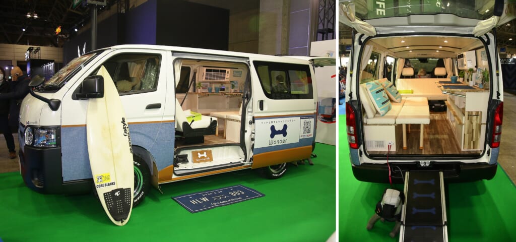 クルマ用品店のオートバックスが手掛ける「Wonder AR」は、ペット仕様のキャンピングカーだ。ペットシーツなどを敷くスペースが設けられており、ペットの毛などが入らないフィルター式の通気口や汚れに強いシート表皮を採用。愛犬と一緒にレジャーが楽しめちゃう!