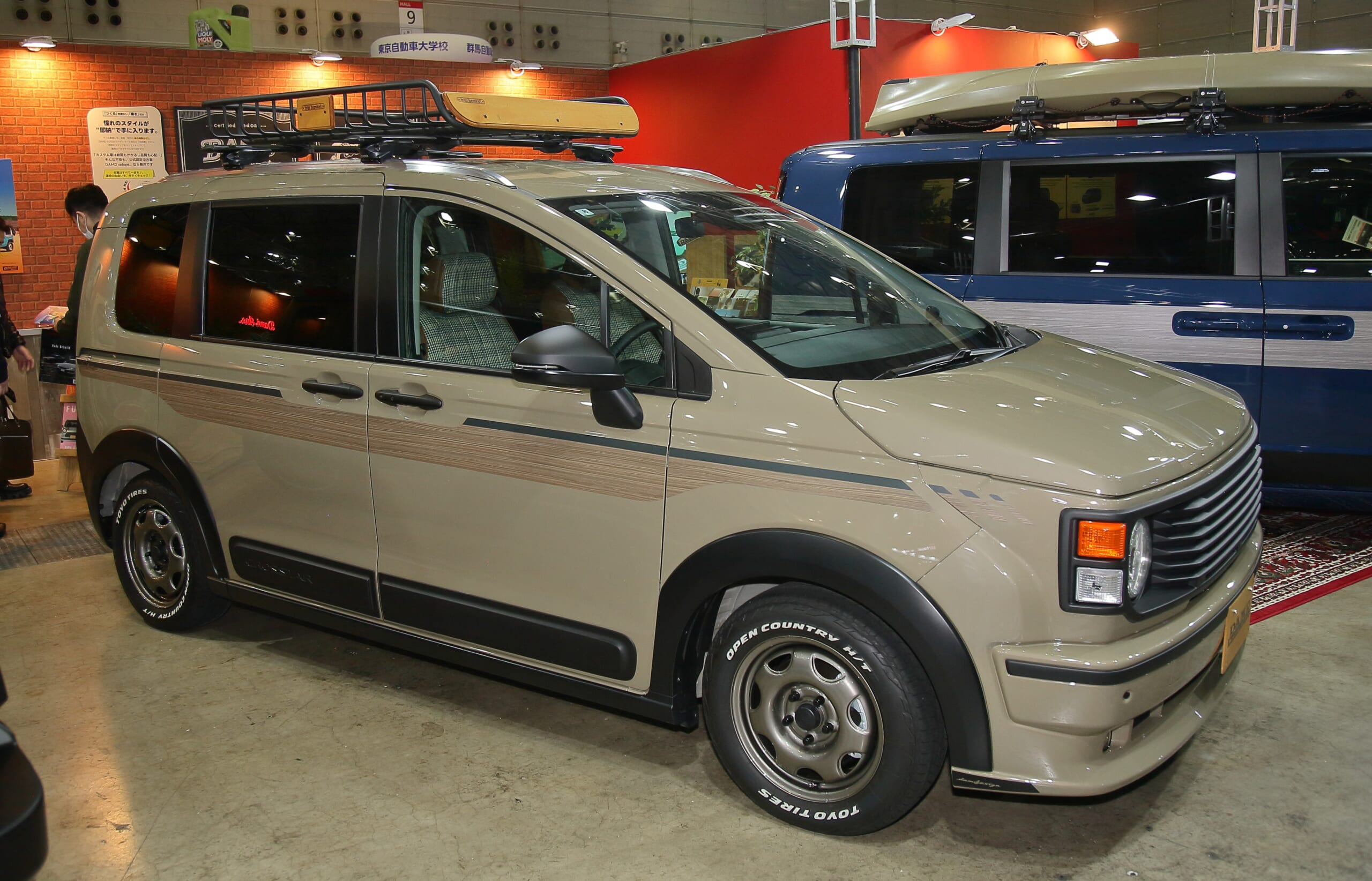 続いてのダムド作ミニバンはホンダ・フリードをベースにした「アイソレーター」だ。丸目ライトが可愛らしく、顔周りが変わるだけで大きくイメチェン。家族でのんびりレジャーを楽しみたい!
