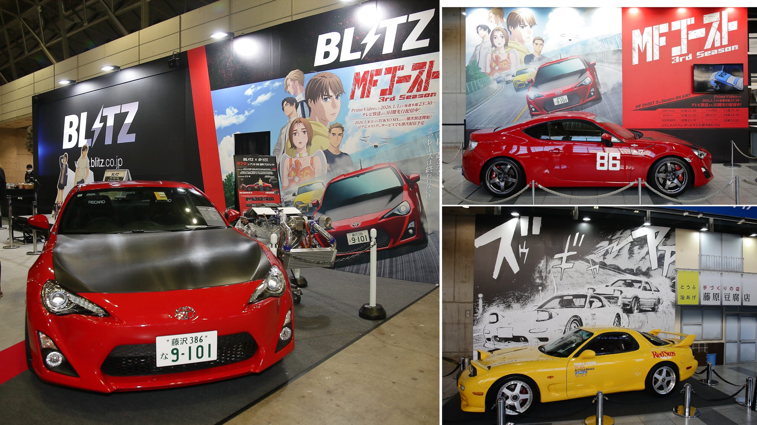 クルマ好きならご存じ、しげの秀一先生作『MFゴースト』の主人公が駆るトヨタ86を「BLITZ(ブリッツ)が再現。連絡口にも86や“頭文字D”のRX-7(FD)が展示されるなど漫画/アニメとリンクした車両に大興奮!