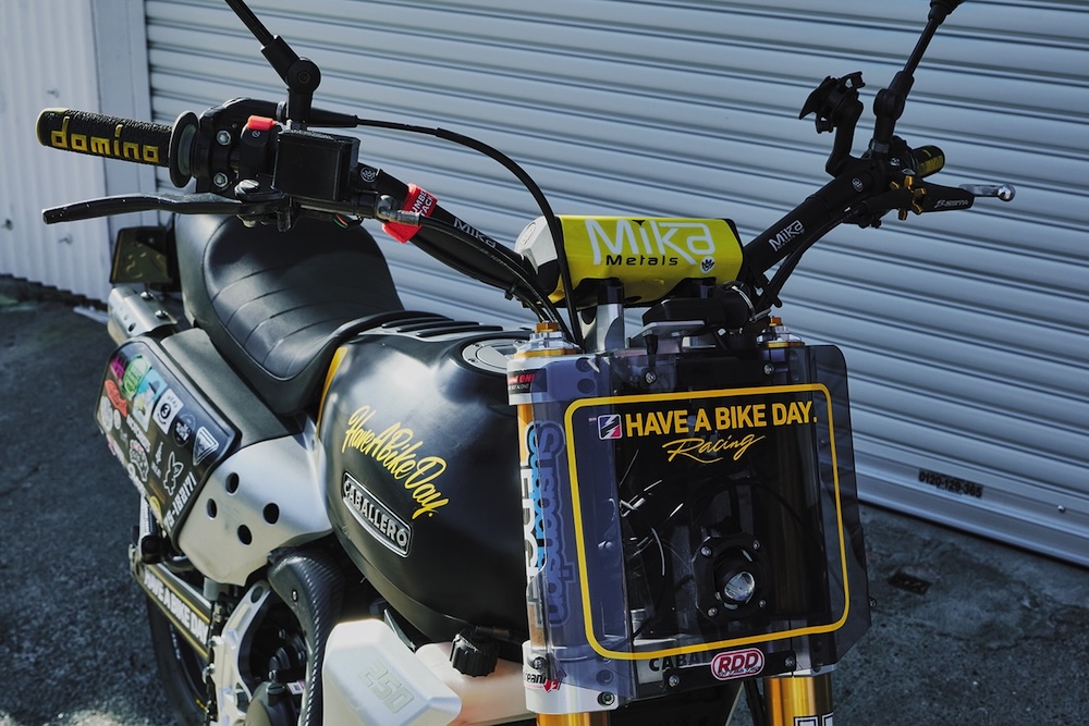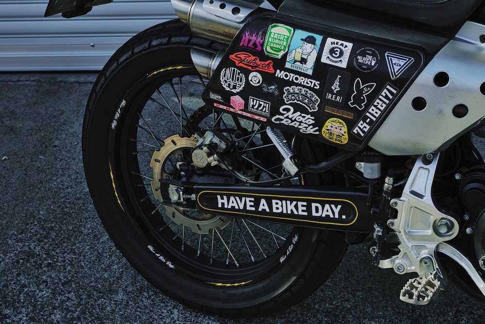 「最初はブロックタイヤを装着して、林道ツーリングを楽しんでいましたが、最近は世界的に盛り上がっているフラットトラックに挑戦したくなって。タイヤやハンドルまわりのパーツは交換したので、いつでも挑戦する準備はできました(笑)」。