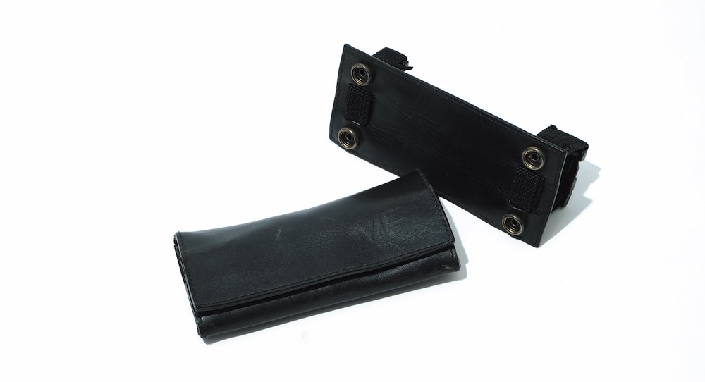 ハンドルに取り付けるVFのウォレット。「革鞄を手掛けている職人の友人が自分の欲しい要素を詰め込んで製作しています」。